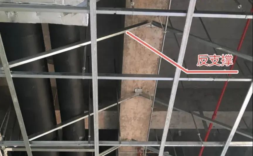 注:当吊杆与设备相遇时,应调整并增设吊杆,吊顶面积较大时,吊顶设备排布复杂,不建议使用反支撑。