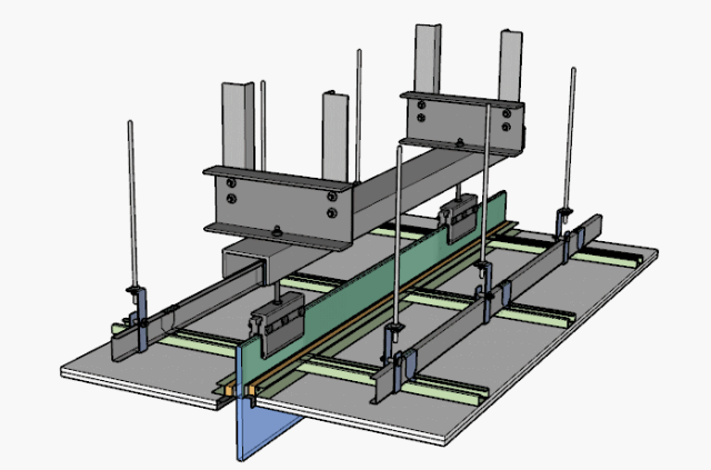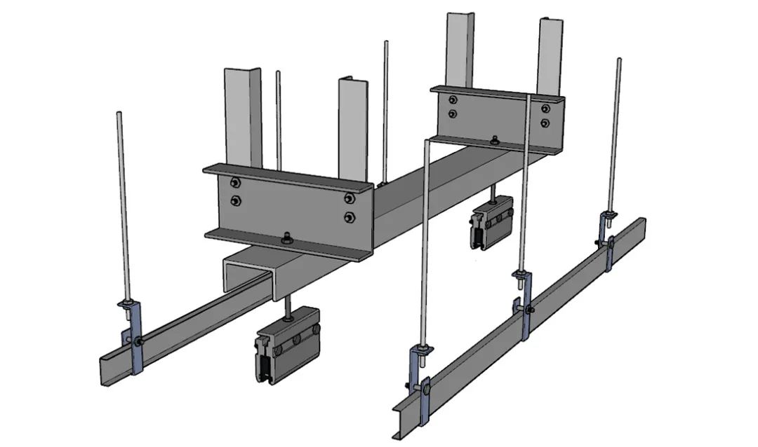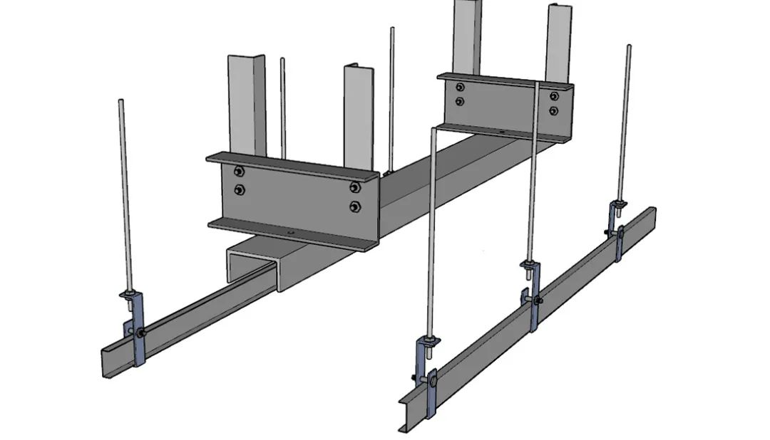 3、安装玻璃基层钢架、吊杆及主龙骨