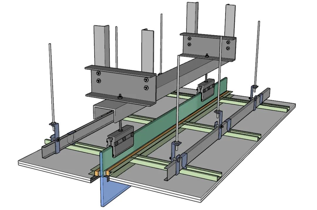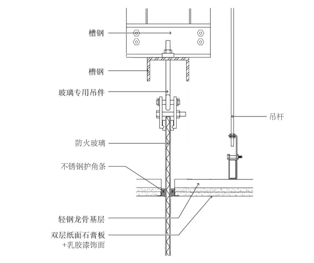 玻璃挡烟垂壁的施工相对来说也比较简单,下面就以玻璃挡烟垂壁在轻钢龙骨石膏板吊顶内安装的工艺为例,来聊聊具体施工做法。