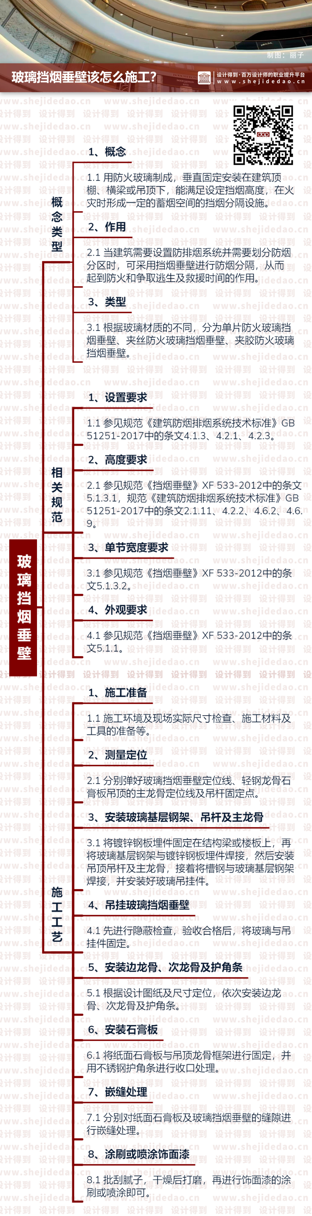 在许多的购物中心、办公楼中,我们都能够看见玻璃挡烟垂壁,很多设计师对于玻璃挡烟垂壁的具体作用、类型、相关规范及施工工艺等等并不十分地了解。