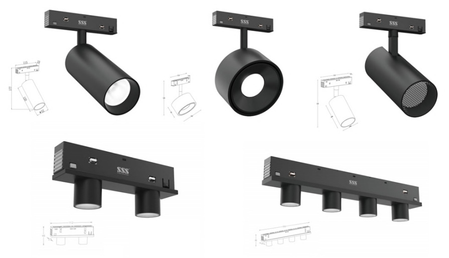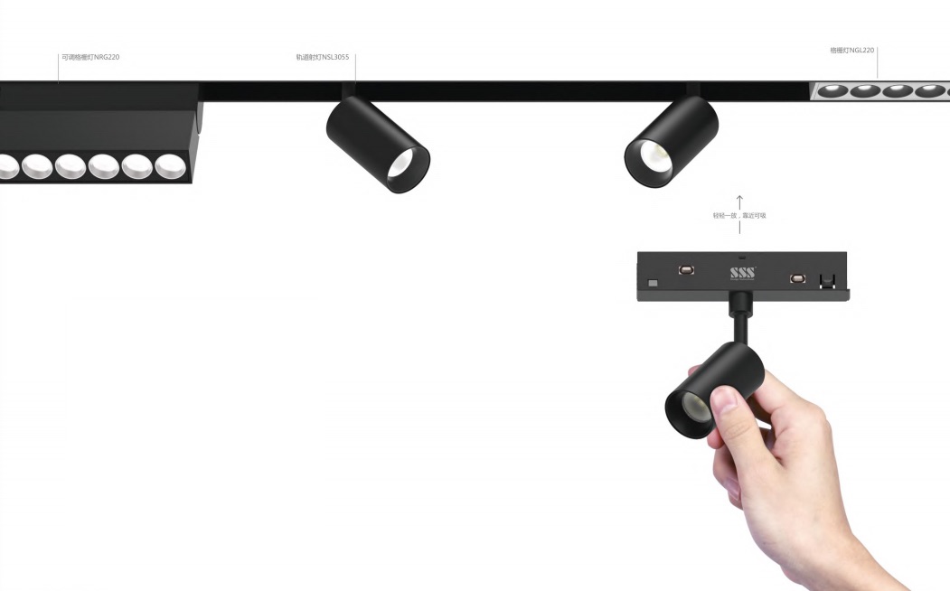 磁吸灯的光源模块有很多,包括泛光类、格栅类、射灯类、吊灯类等,可满足各种空间照明,还可自由增减灯具数量,自由移动、自由调角度。
