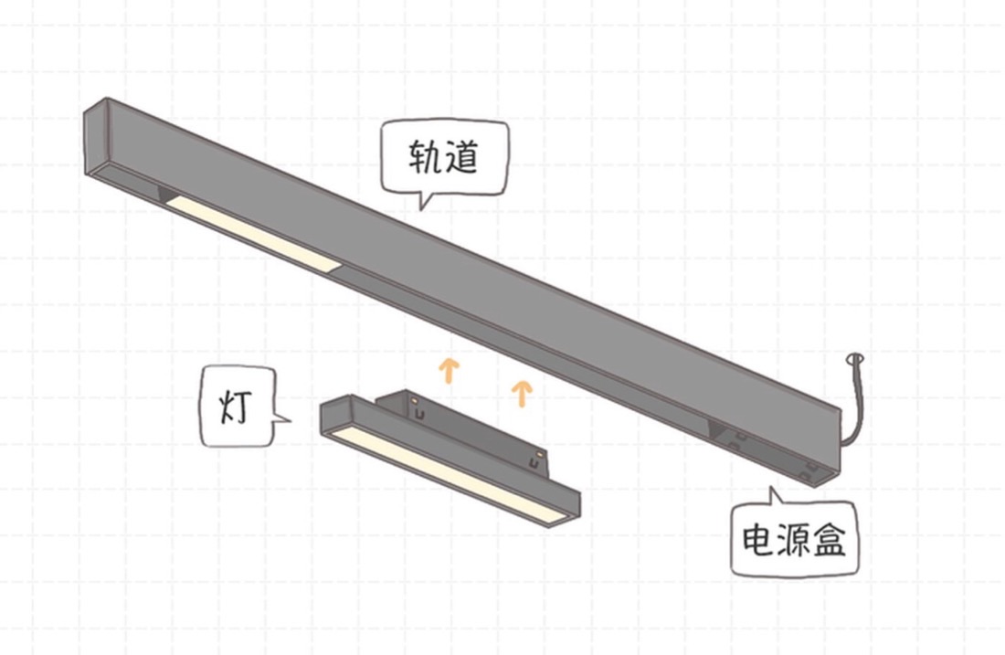 磁吸灯,全称为磁吸轨道灯,是线性照明灯具的一种。虽然看起来很「黑科技」,但实际上它的基础技术还是传统的轨道灯。