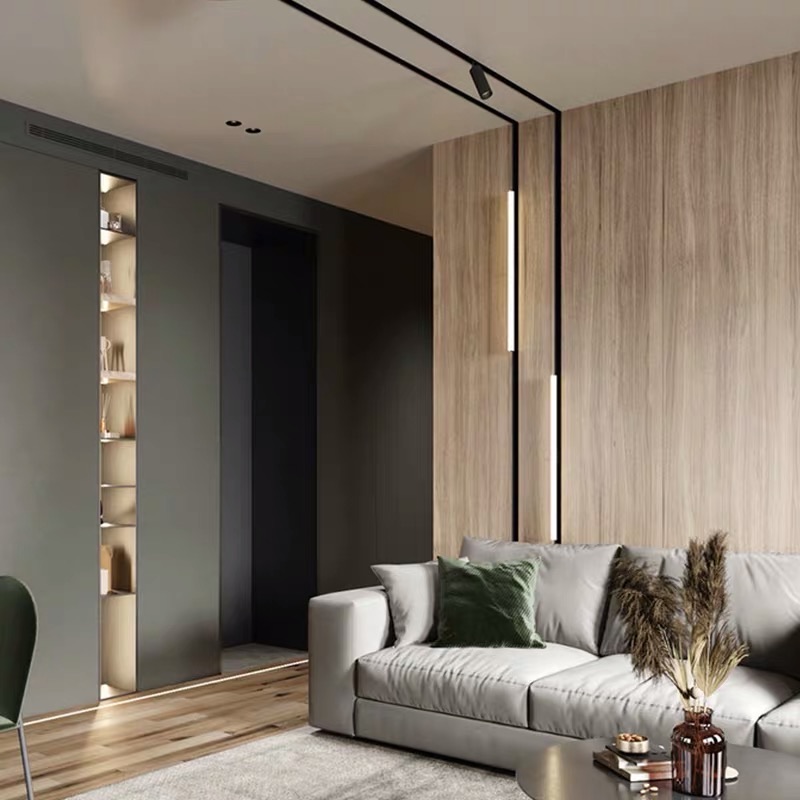 在线性照明设计中,磁吸灯能完美融入空间,营造出独特的光影氛围,其灵活性打破了传统的设计思维,给照明设计注入了一股清流,也为无主灯设计提供了更多的可能性。