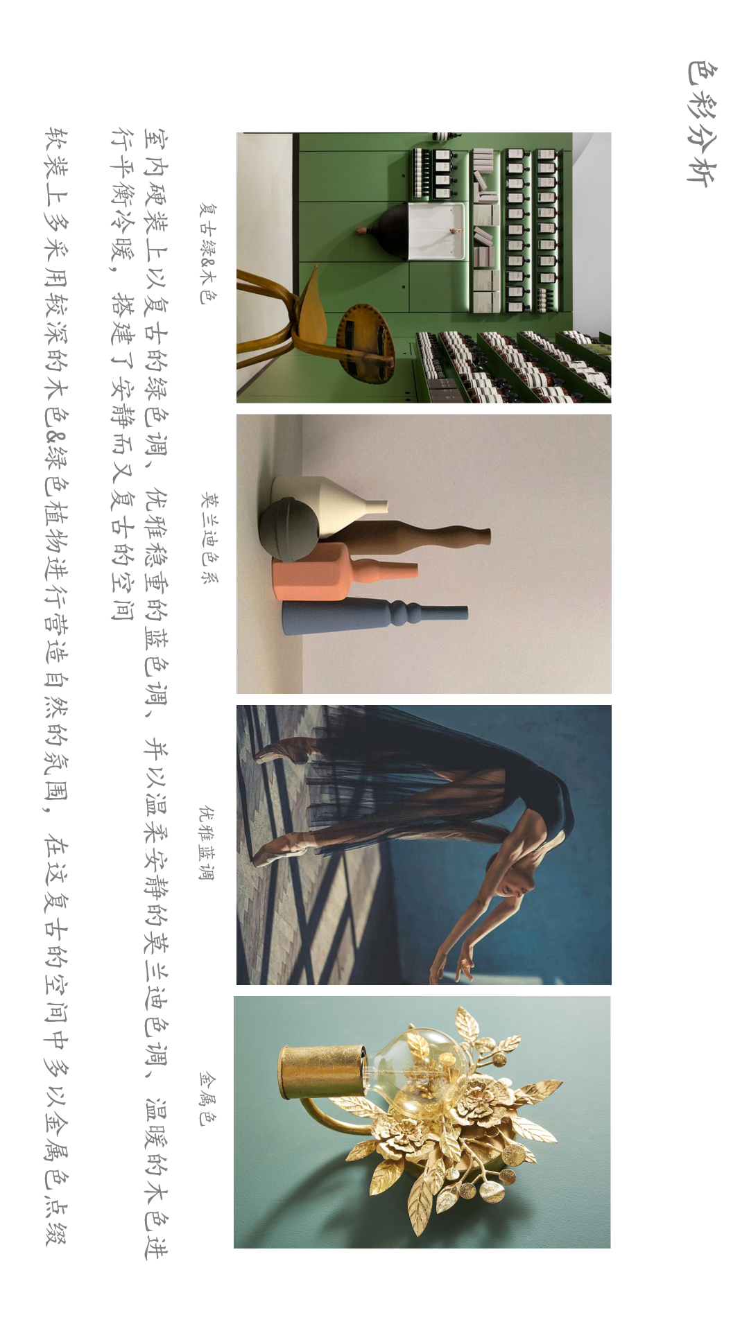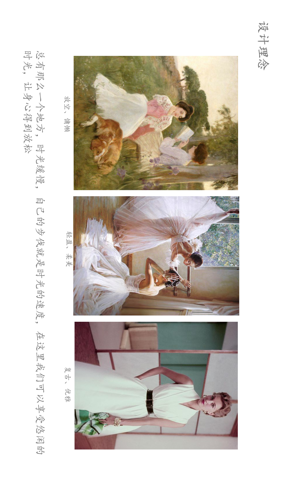 设计理念:放空、慵懒;轻盈、柔美;复古、优雅