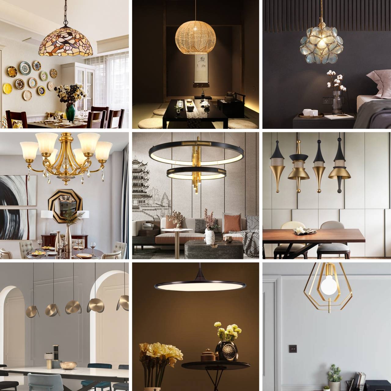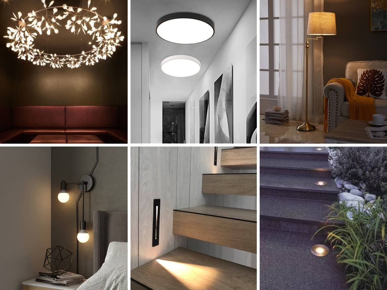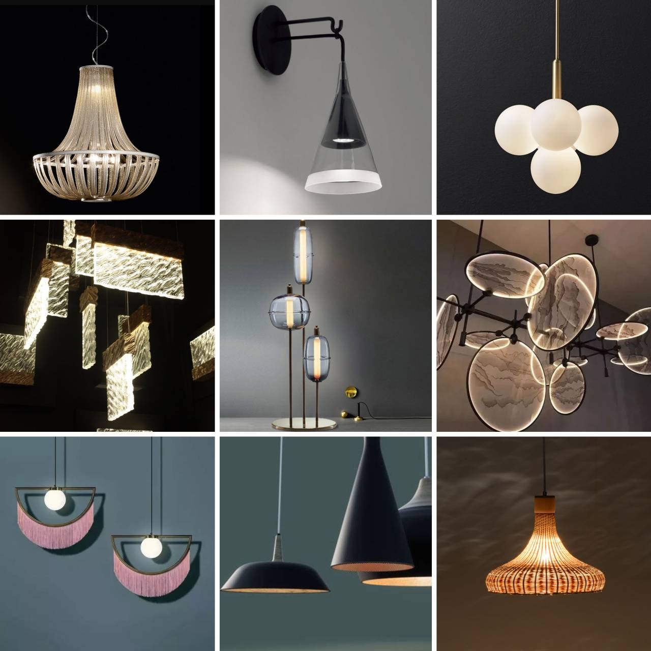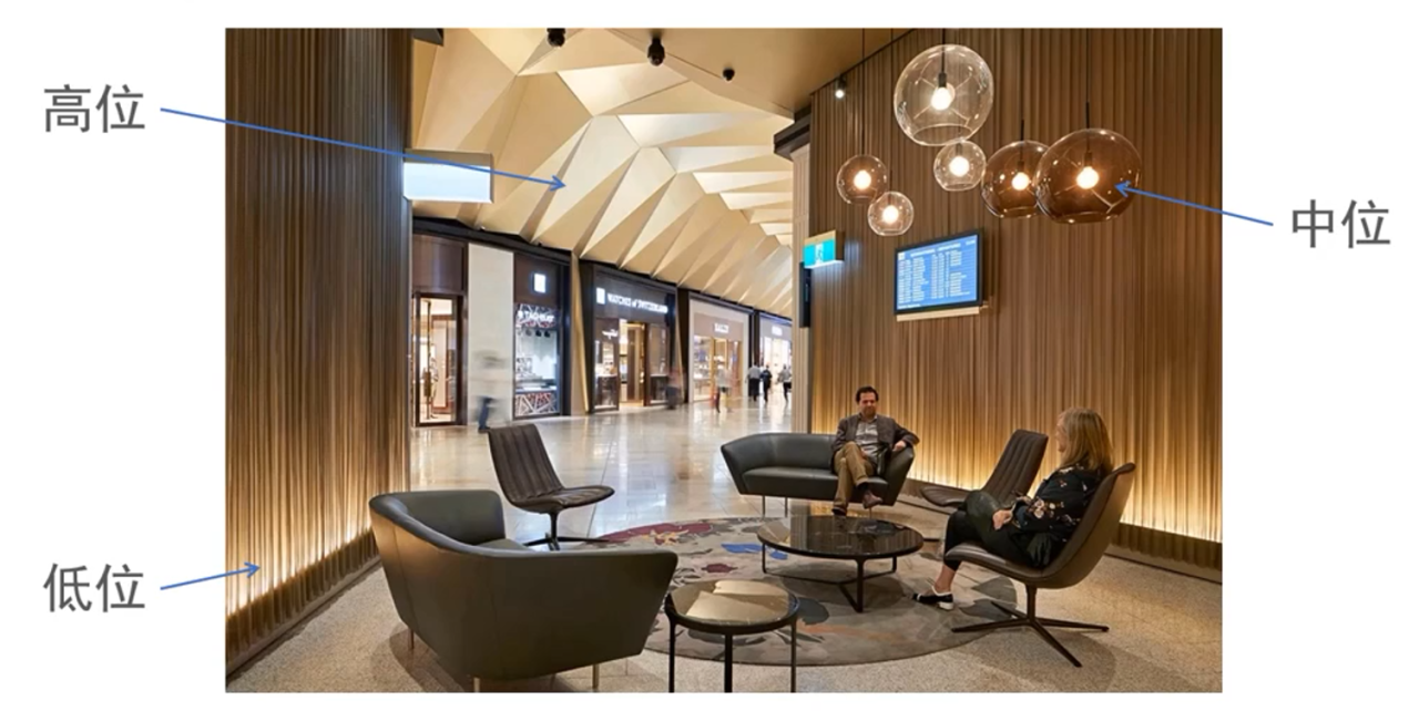 b、根据灯具类型分类 根据灯具类型通常可以分为光源灯具、装饰灯具。 ① 光源灯具 通常指运用光源灯或模块来组成部件,一般情况下需要进行前期施工的一类灯具,通常可以分为射灯、筒灯、轨道灯、灯带。 source:google.cn △射灯部分样式示例 source:FINE'S △筒灯部分样式示例 source:google.cn △轨道灯部分样式示例 source:google.cn △灯带部分样式示例 ② 装饰灯具 通常指具有装饰性的成品灯具,也可以理解为后装灯具。可以根据灯具的材料种类、功能位置和灯具风格来进一步进行分类。 1)根据材料种类分类 包含水晶、玉石、云石、金属、塑料、玻璃、陶瓷、琉璃、纸质、羽毛、黄金、木质等。 source:google.cn △部分样式示例 2)根据功能位置分类 包含吊灯、落地灯、墙壁灯、台灯、吸顶灯、地埋灯等。 source:google.cn △部分位置示例 3)根据灯具风格分类 包含中式、新中式、美式、欧式、法式、现代、意式极简、意式轻奢、现代轻奢、极简、地中海等。 source:google.cn △部分风格示例 c、根据使用位置分类 按使用位置通常可以分为高位、中位、低位。 source:google.cn △效果示例