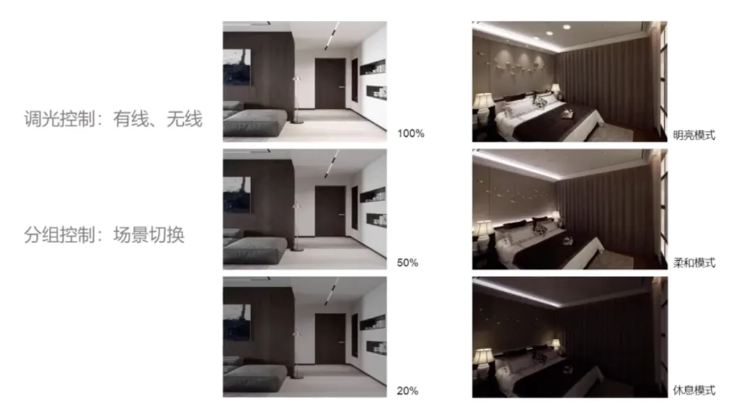b、灯具点位(节点及选型) 施工图深化阶段,给出具体灯具点位、参数、施工节点等。 c、智 能控制架构及模式 可根据甲方需求,设置智 能控制模式场景,为甲方体验感增值。 5、怎么做专业论证? 从整体的角度审视每个点位的灯光的合理性,比如色温是否统一、光束角、照度值是否合适等。 然后通过选型合适的灯具验证构思的灯光设计方案,或者充分借用灯具厂家的专业支持深化灯具方案。