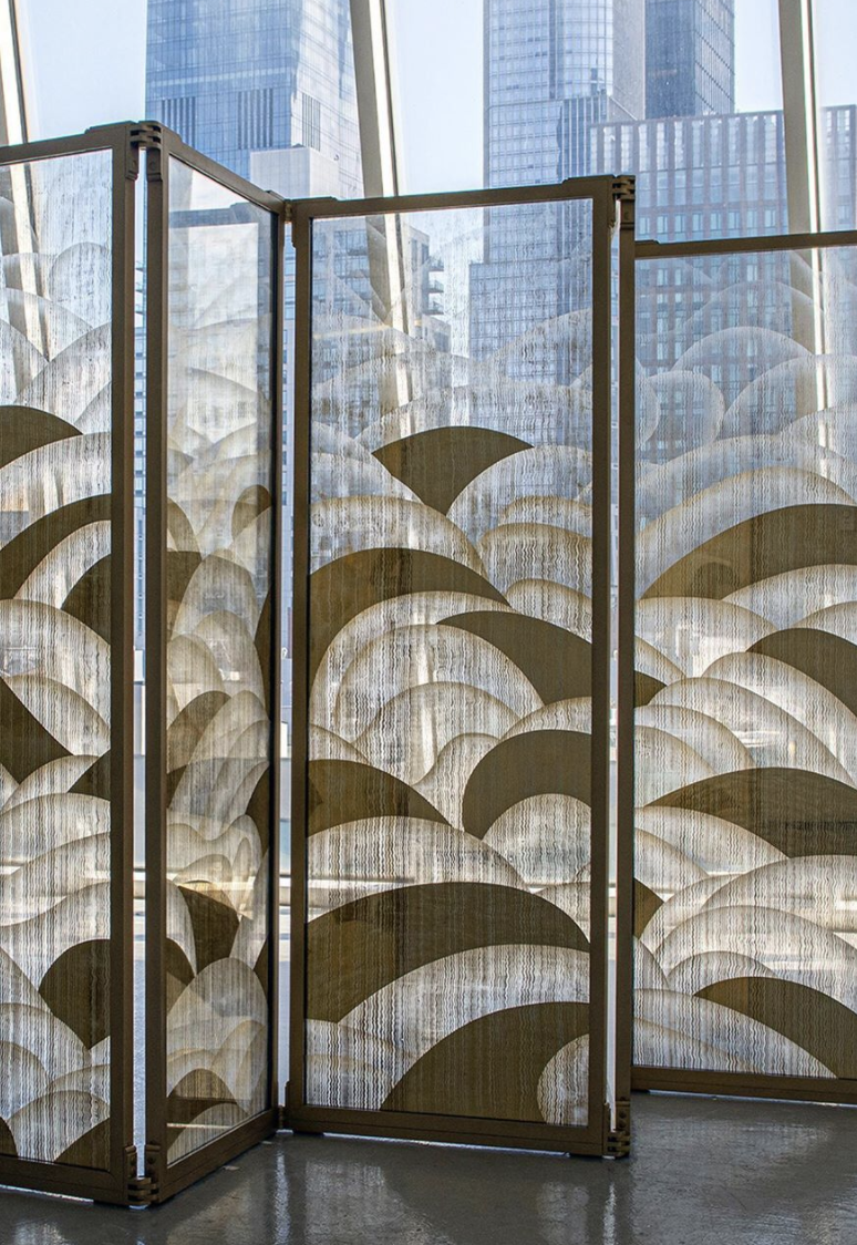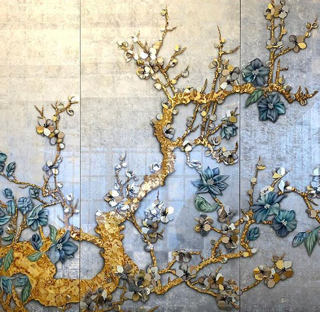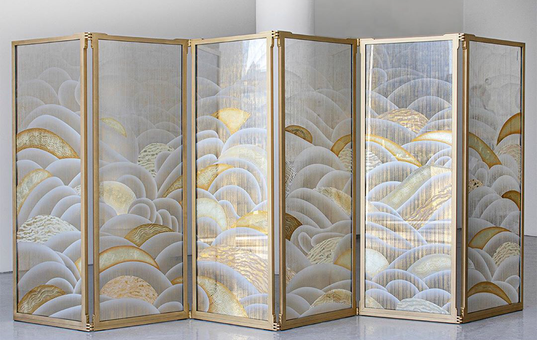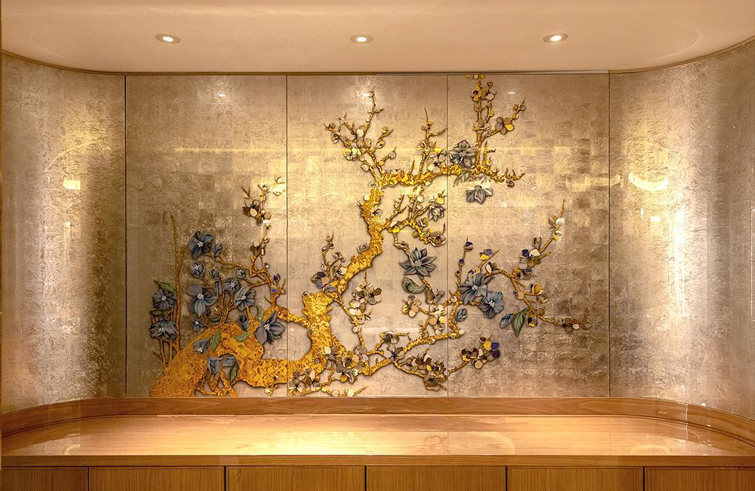 当金属箔应用在背面经过凿刻或者雕刻的玻璃上时,立体的肌理更加明显↓