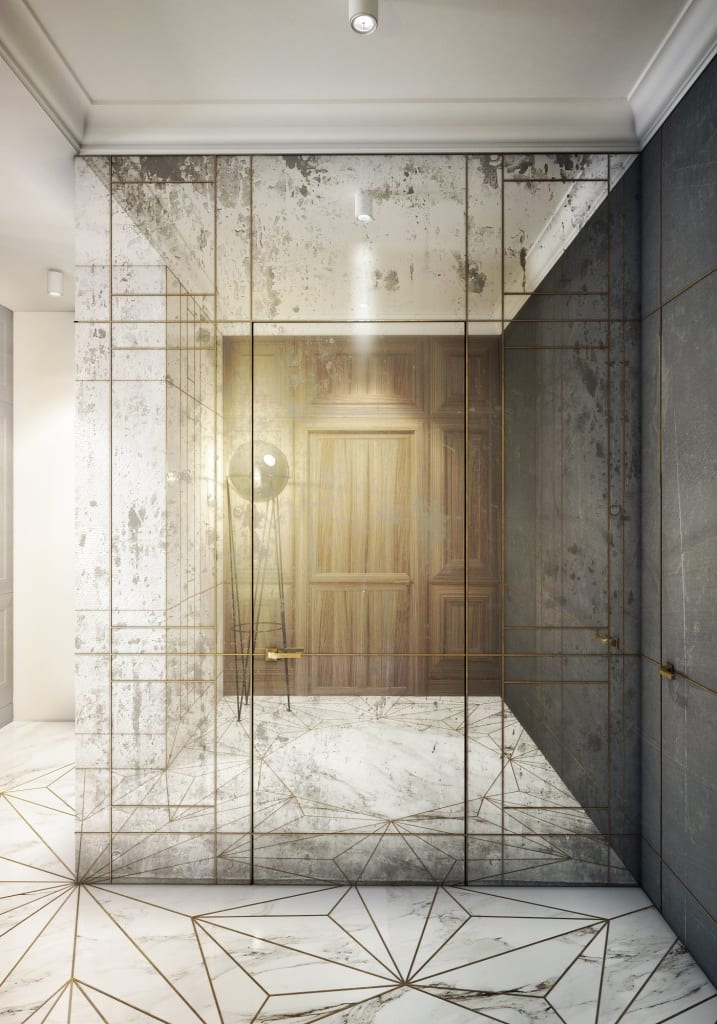 虽然金属箔仿古镜的常规形状为方形,但是经过下面四种方法可以创造更多带有金属光泽图案的玻璃饰面。