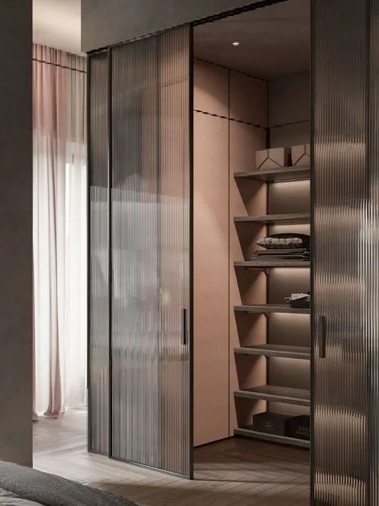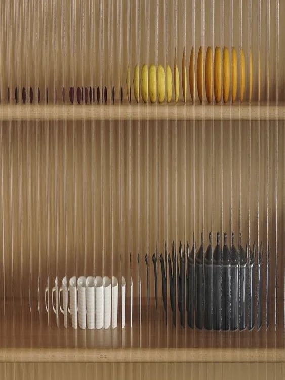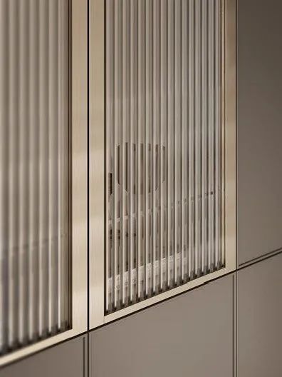 置于各类柜体中的长虹玻璃,磨砂的质感,竖行的纹路,在感官上赋予其独特的艺术气息。