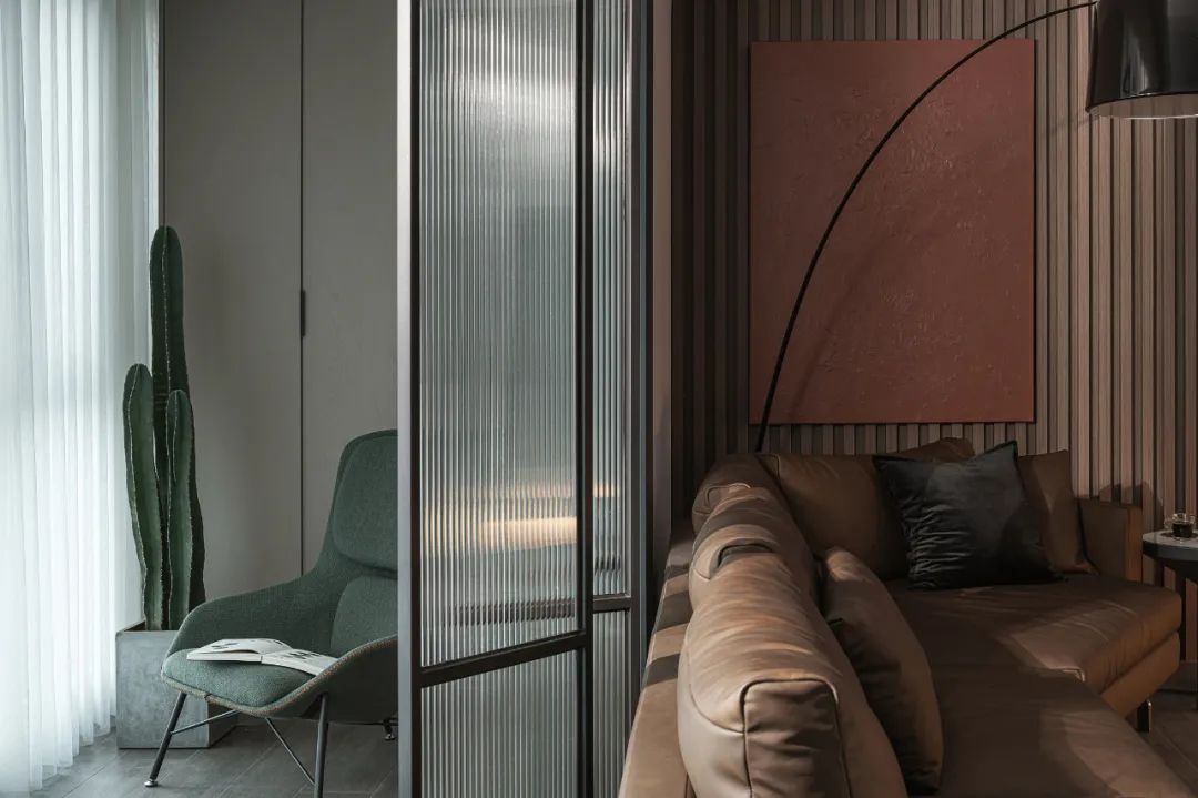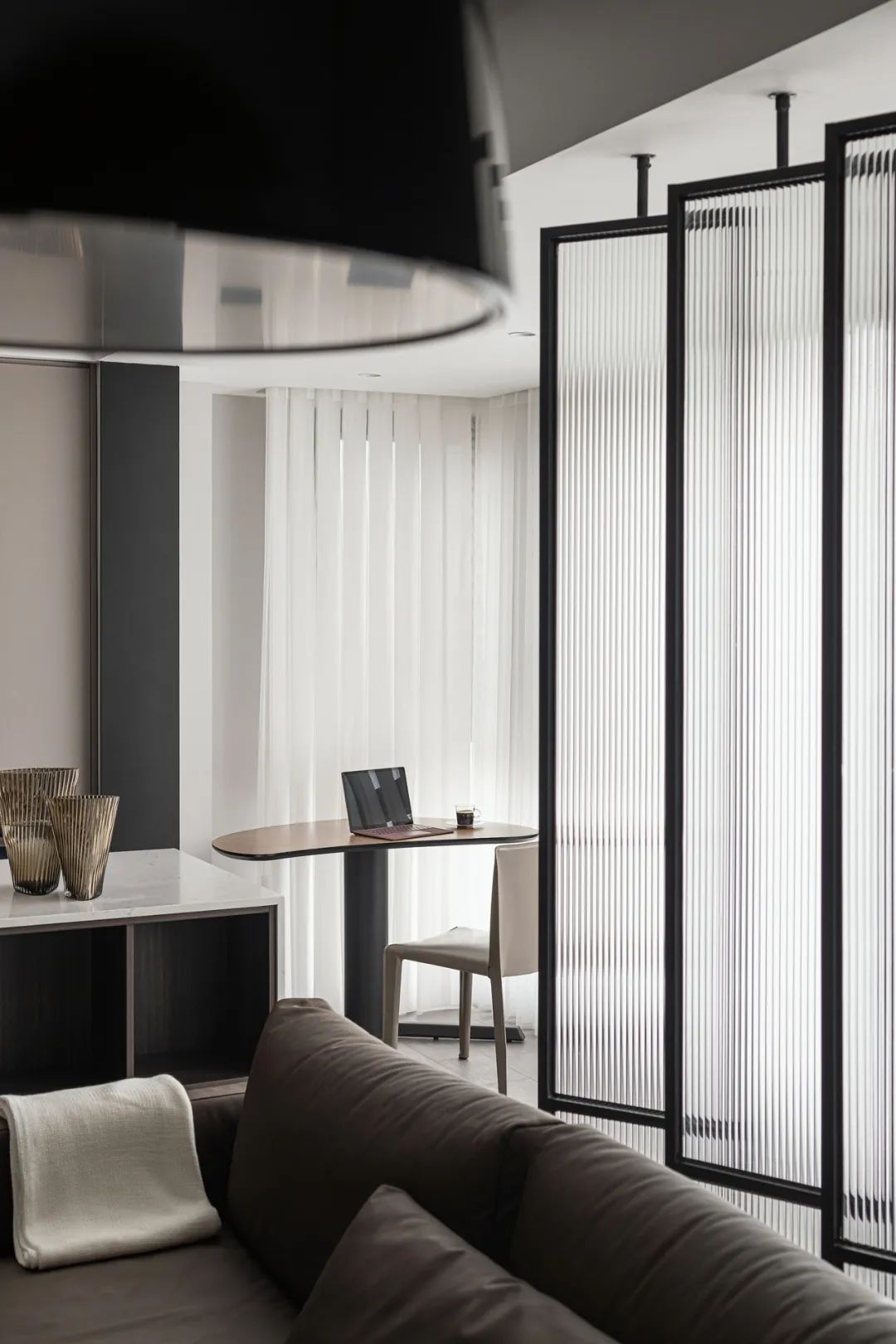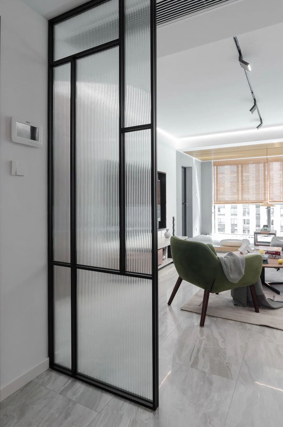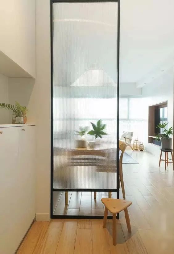 长虹玻璃的特殊质感使它成为了妆点空间的小能手,这种透光不透视的朦胧感作为隔断来划分空间,既不会挡住光线,还能增加美感。▼