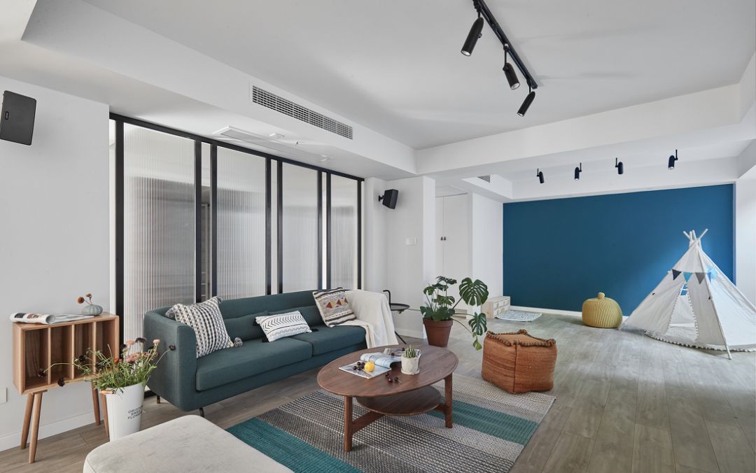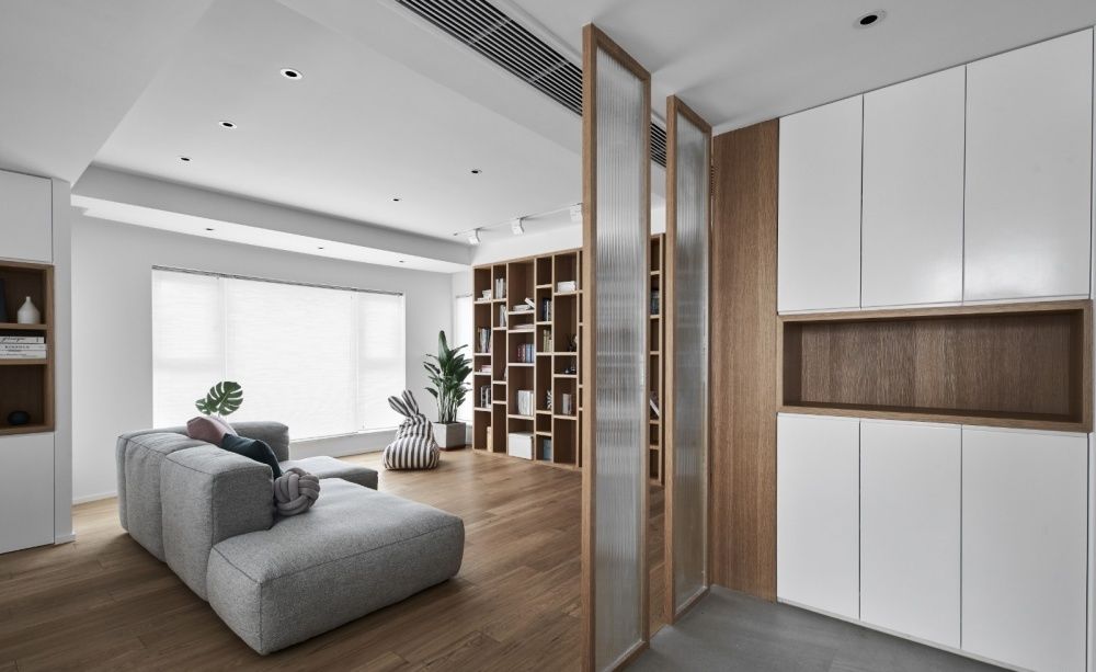 开放式的客厅里,如果加入一般隔断,往往会显得紧凑,而利用长虹玻璃的话,不仅能有效划分功能区,还能在无形中提升整体的美感。▼