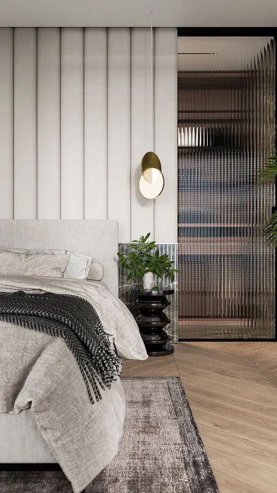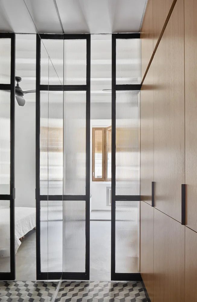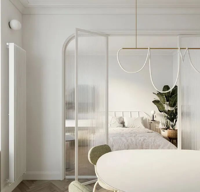 小户型或一居室中,直接用长虹玻璃做卧室门,让光线互通,同时颜值满满。▼
