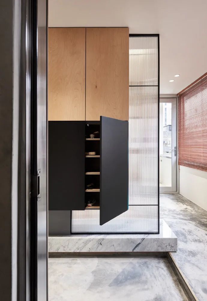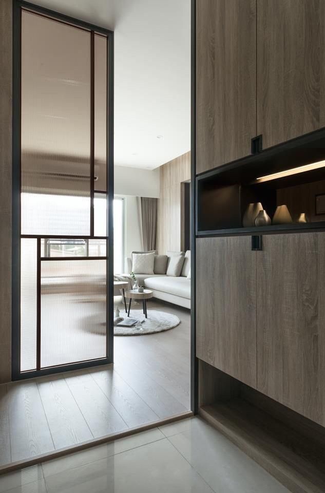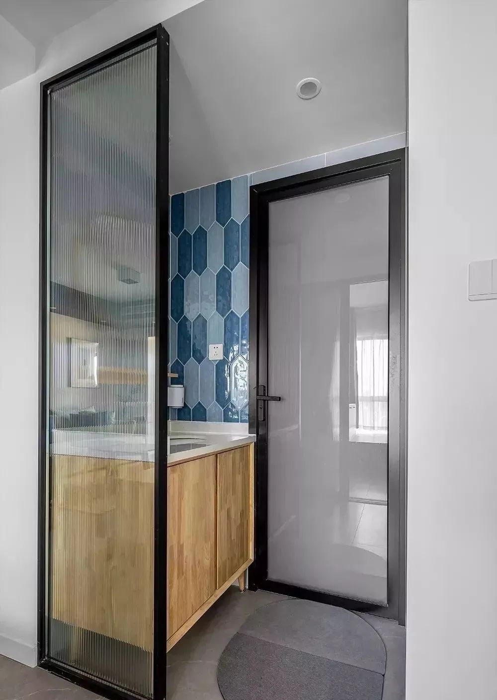 在进门处加入长虹玻璃的设计,不仅不影响室内格局,还能避免室内空间一览无遗,安全感十足!▼