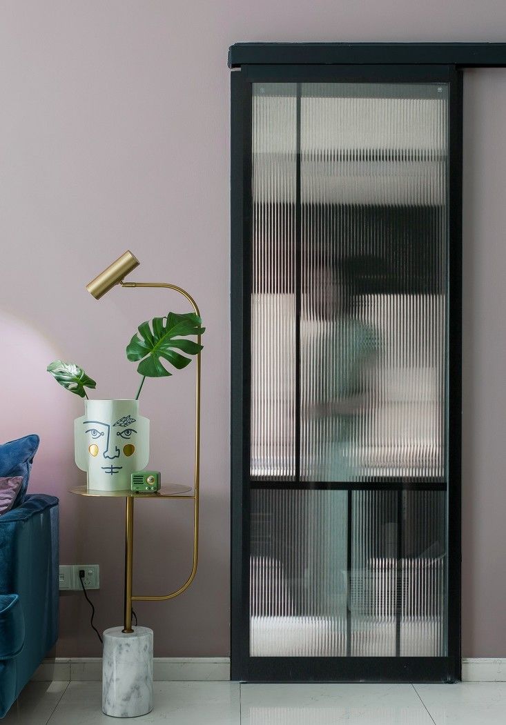 阳台与客厅之间用长虹玻璃做移门,分割不同功能空间,也能起到美化室内环境的效果。▼