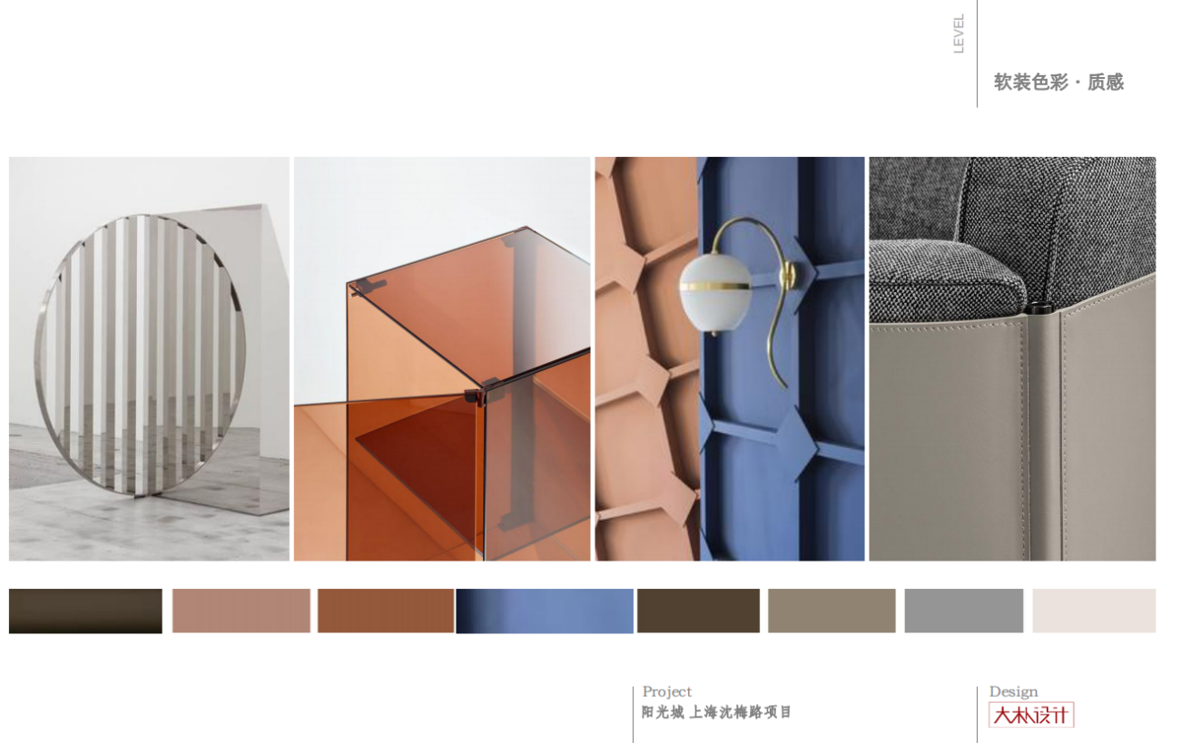 色彩和材质最终会影响到软装设计的视觉效果和触觉体验(使用)效果,深化部分先确定色彩及材质方案,再逐步完善细节。