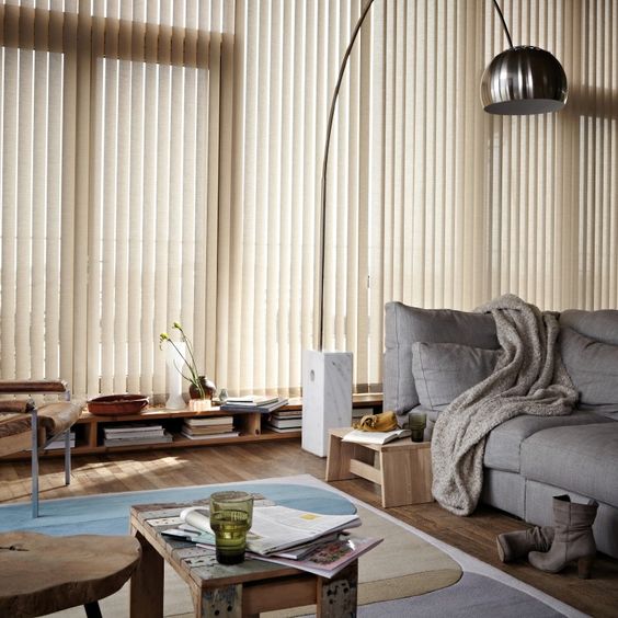 目前常见的竖百叶帘结合了传统窗帘的垂坠感+百叶窗的光影调节功能,纵向分布的光线也让空间看起来更加显高。