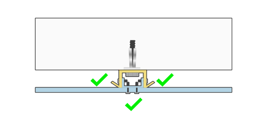 但这种方式,承重面只有下面,而龙骨两边的空间没有被利用上,而且从下面固定面层也不稳固,所以就需要用卡扣的方式连接,也就是龙骨卡件。卡扣也可以用螺丝在两边固定,于是形成了“撑卡吊顶”。