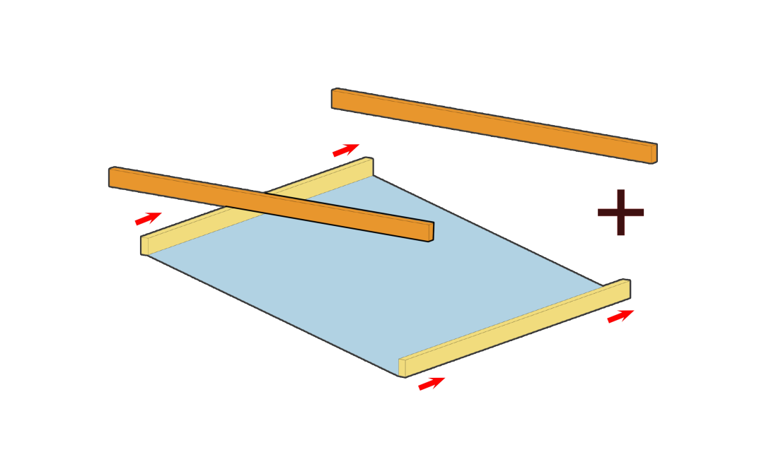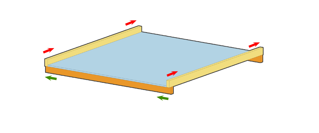 首先是四周固定(面固定),就像在两张纸夹层处抹一圈胶水,如果是两张A4纸自然能牢牢粘住,但如果两张纸变得很大,而且纸又比较软,那么不难想象中间部分纸会垂下来。