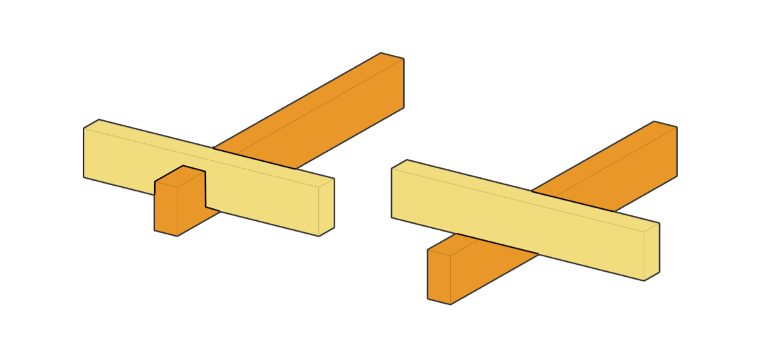 而主次龙骨的连接就像把两个长方体进行组合,主要方式也就相嵌和叠加。