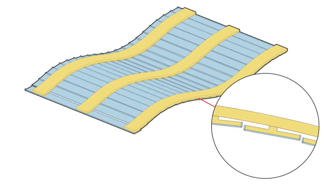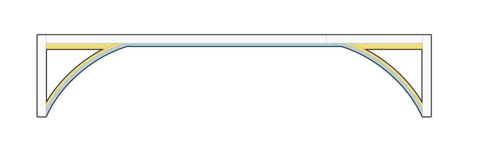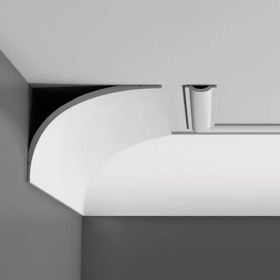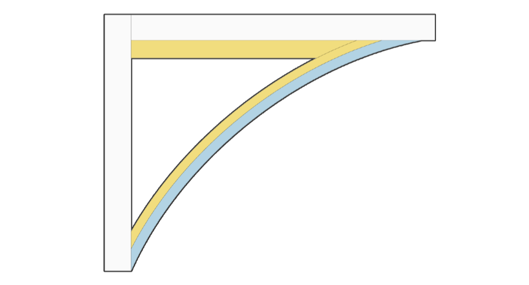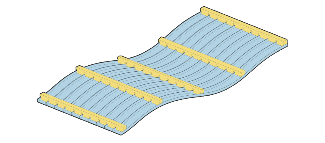但当曲面较大时,曲面会因重力下垂,这就需要龙骨进行支撑,通过木龙骨或者轻钢龙骨的弯曲搭建出弧面等造型。