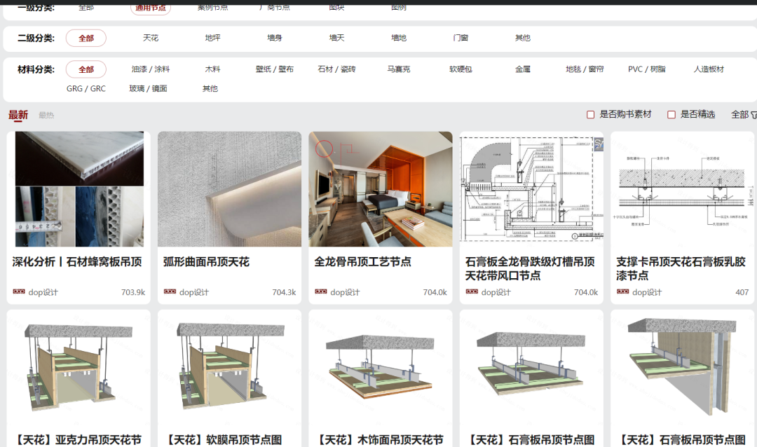 另外,有关吊顶、反支撑、转换层等各种通用节点、图块图例大家都可以到我们官网的【dop节点库】下载哦,都是含有dwg格式的,可以直接用在你的图纸中哦~