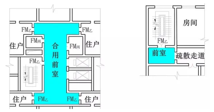 共用前室=住宅建筑+剪刀楼梯间前室×2