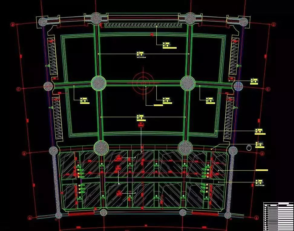 天花线条要考虑标高,标高的确定要分析机电施工结构层尺寸、空调、消防、排烟等知识。不需要深入,但相关设备的点位尺寸,规范要求,尺度预留,设计禁忌,都需要牢记。