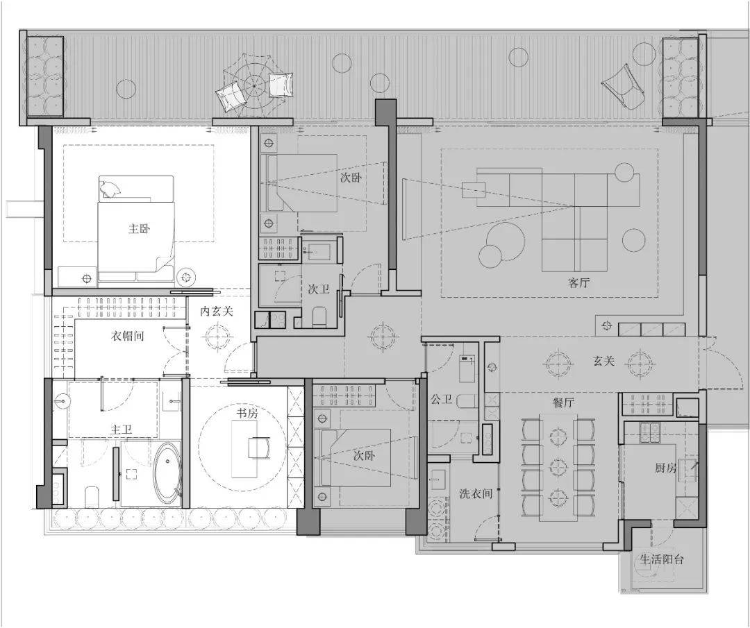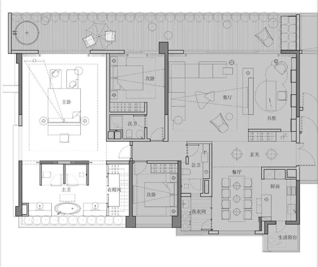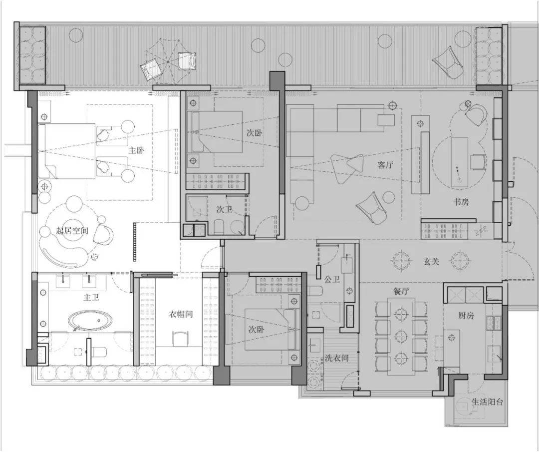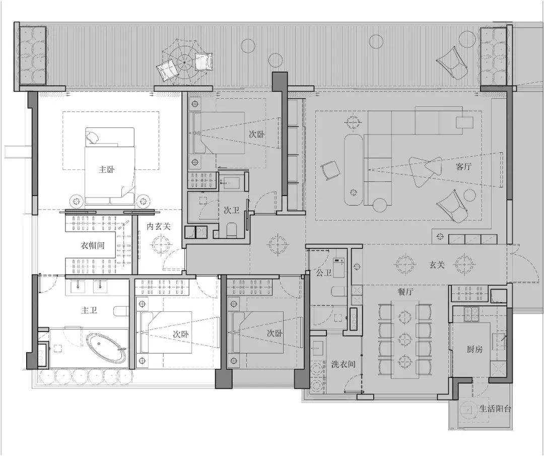 3、一个完整的空间是由辅助与被辅助空间构成的,辅助空间是决定整体空间是否高效的重要因素。