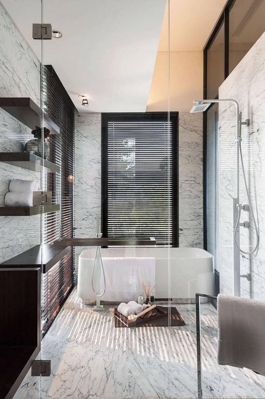 c、整个空间全部采用洄游动线,大到主要功能区块,小至台盆浴缸,所有元素可以独立出来看作艺术品单独展示。