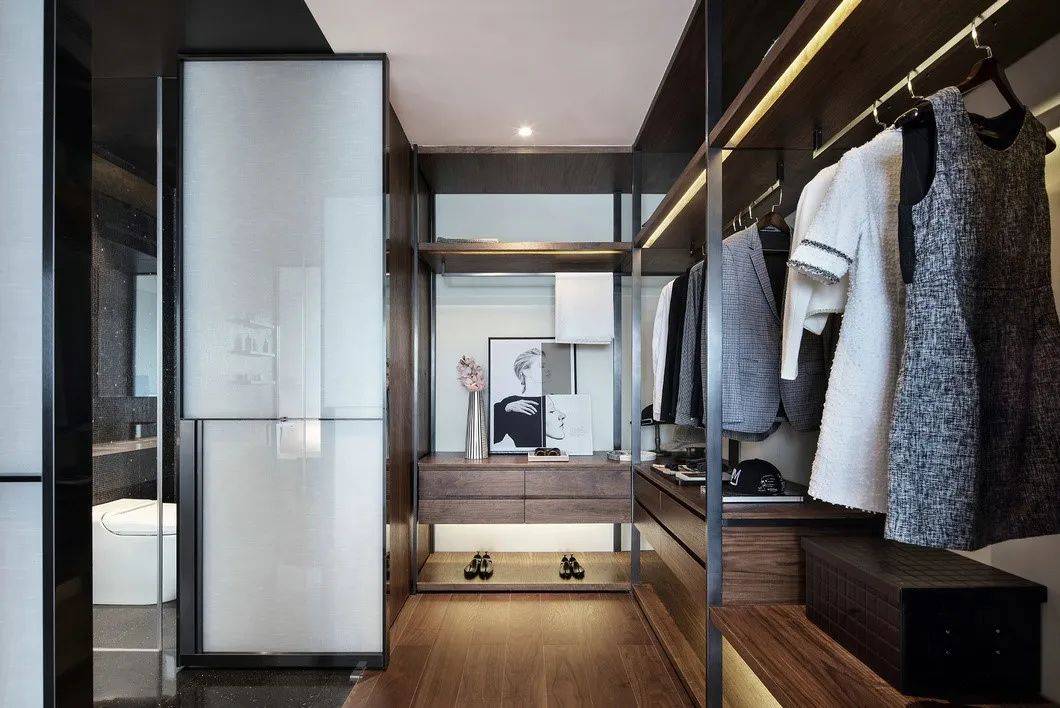 b、床品区、衣帽间、卫生间三者一条动线串联,更加精简,效能最大化。