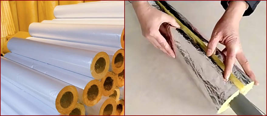 玻璃纤维离心喷吹成型,管壳分段套装,密度48~64 kg/m³,厚度25~50mm。A级不燃,耐温350℃,常用于KTV、机房、管道井。