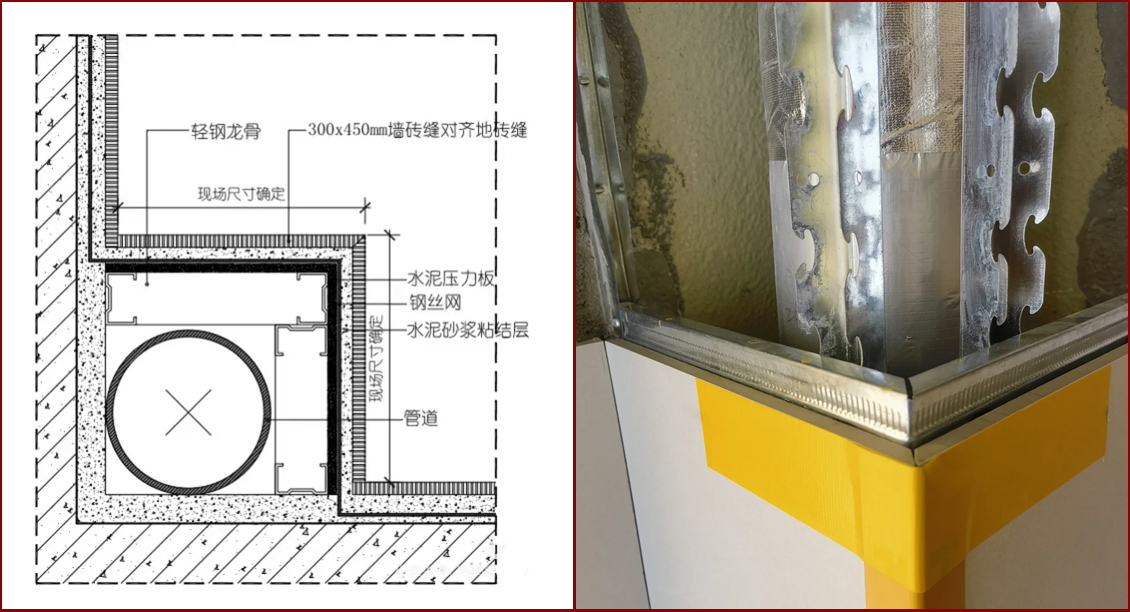 以下从材料、构造、工艺、品质控制四个维度,系统梳理目前主流包立管做法,供设计师在方案阶段做比选。主要从以下两个问题来帮你理解: