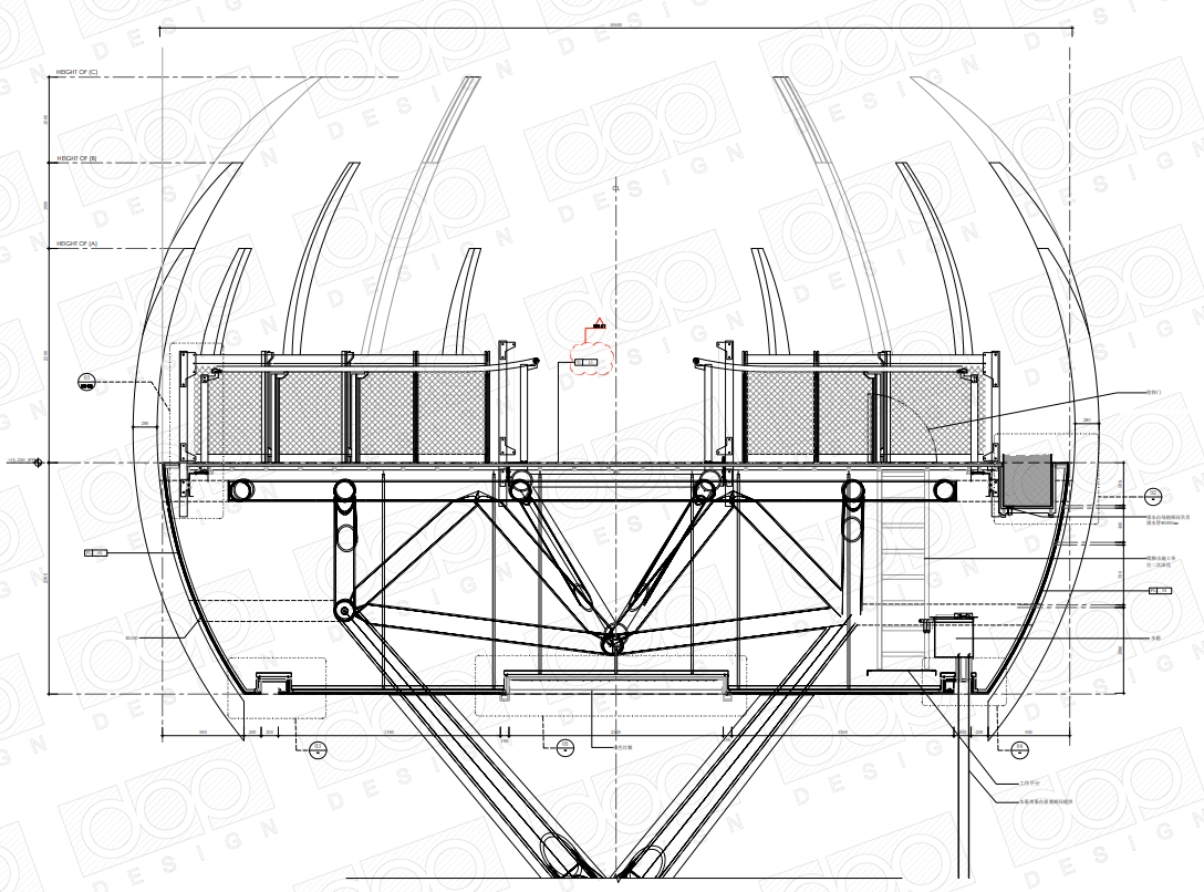 建筑高度:项目单体共5栋,1#楼为商业建筑高度36m,2#3#楼为办公建筑总高度132米,4#裙房商业总高度9.6米,5#商业街总高度19.20米