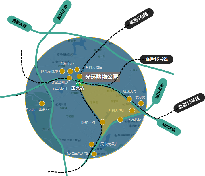 重庆光环购物公园位于重庆北部两江新区核心商务区的金州商圈,是轨道交通地铁5号线的一个标志性商业项目。