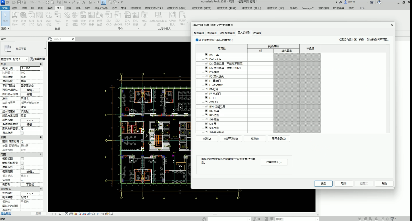 由于是深化项目,设计方在前期提资上给了天花的位置线,revit中可以根据CAD的图层,自由开关图层线,让我们在建模的过程中可以作为参考依据。