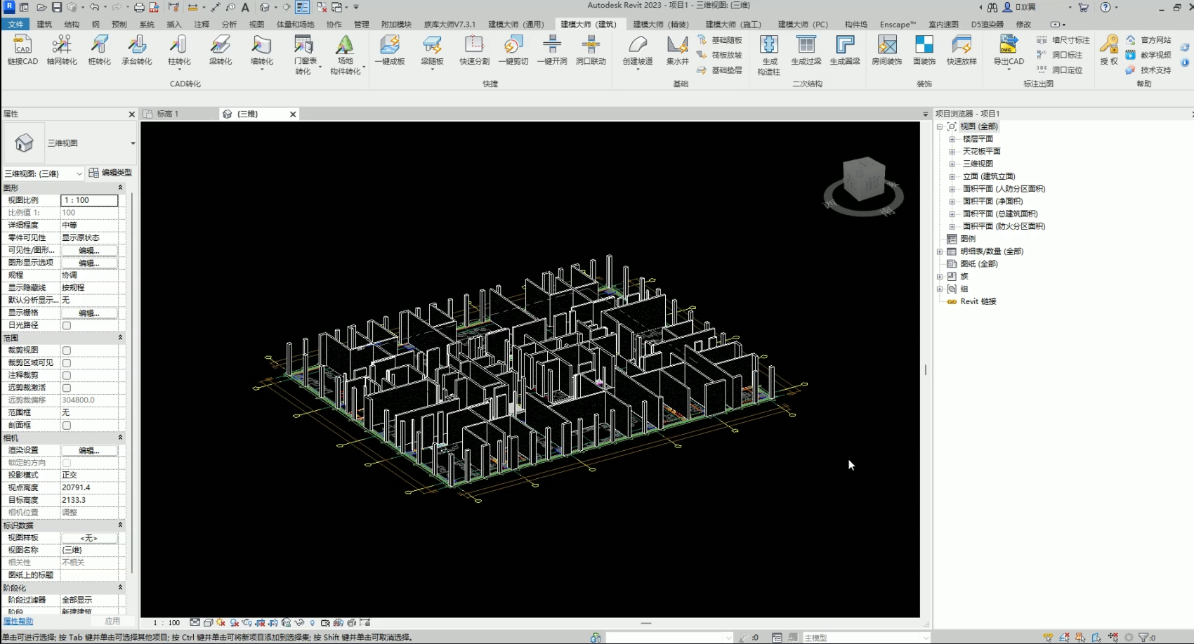 以前得手动去描、去修补断线,但在 Revit 里,我直接利用它的一键生成建筑框架。