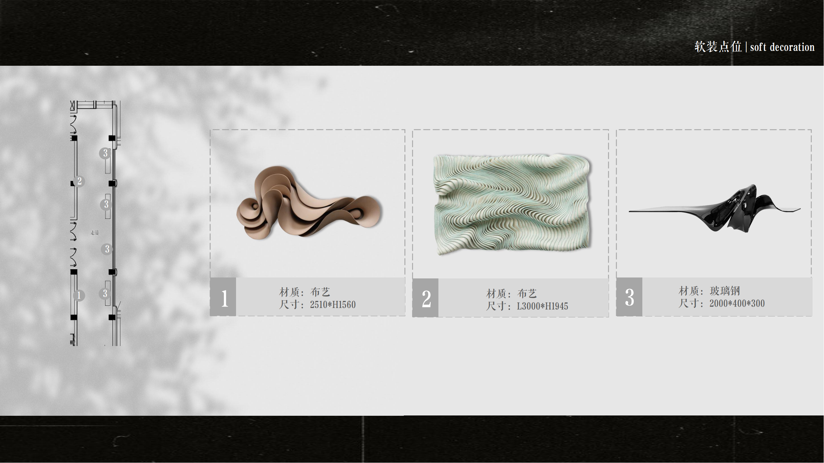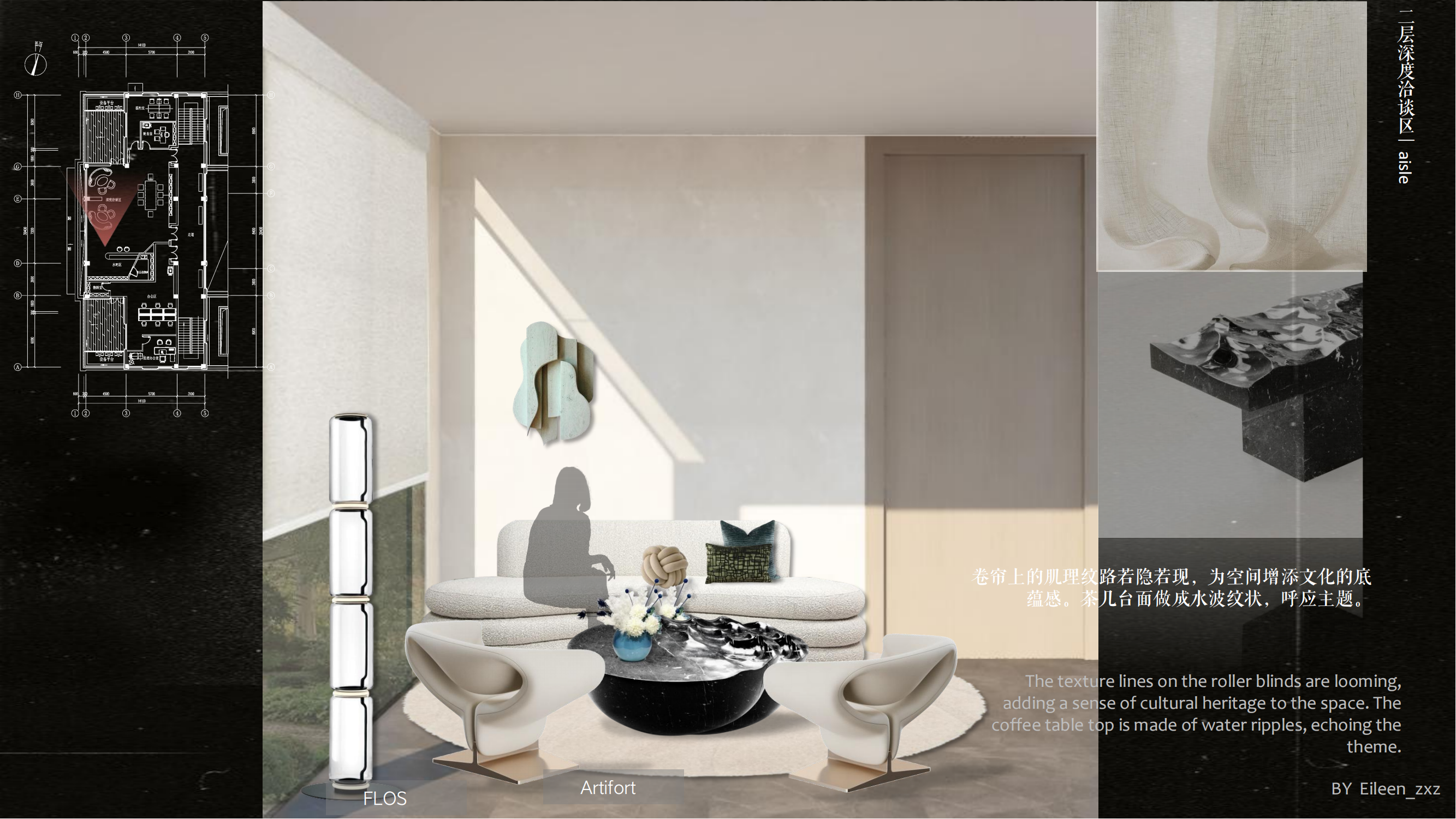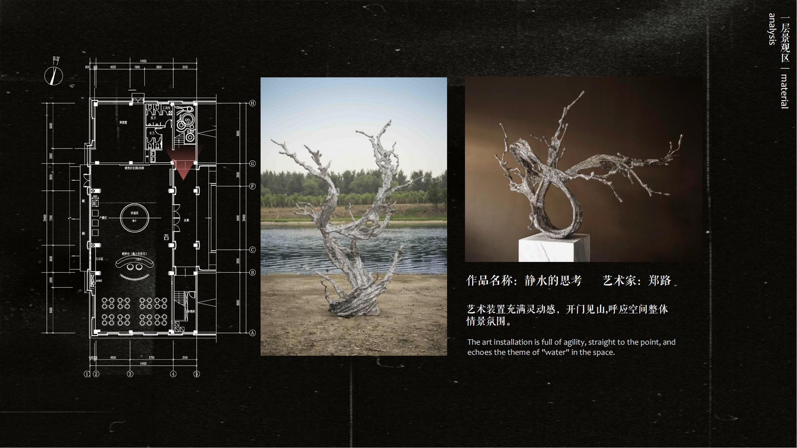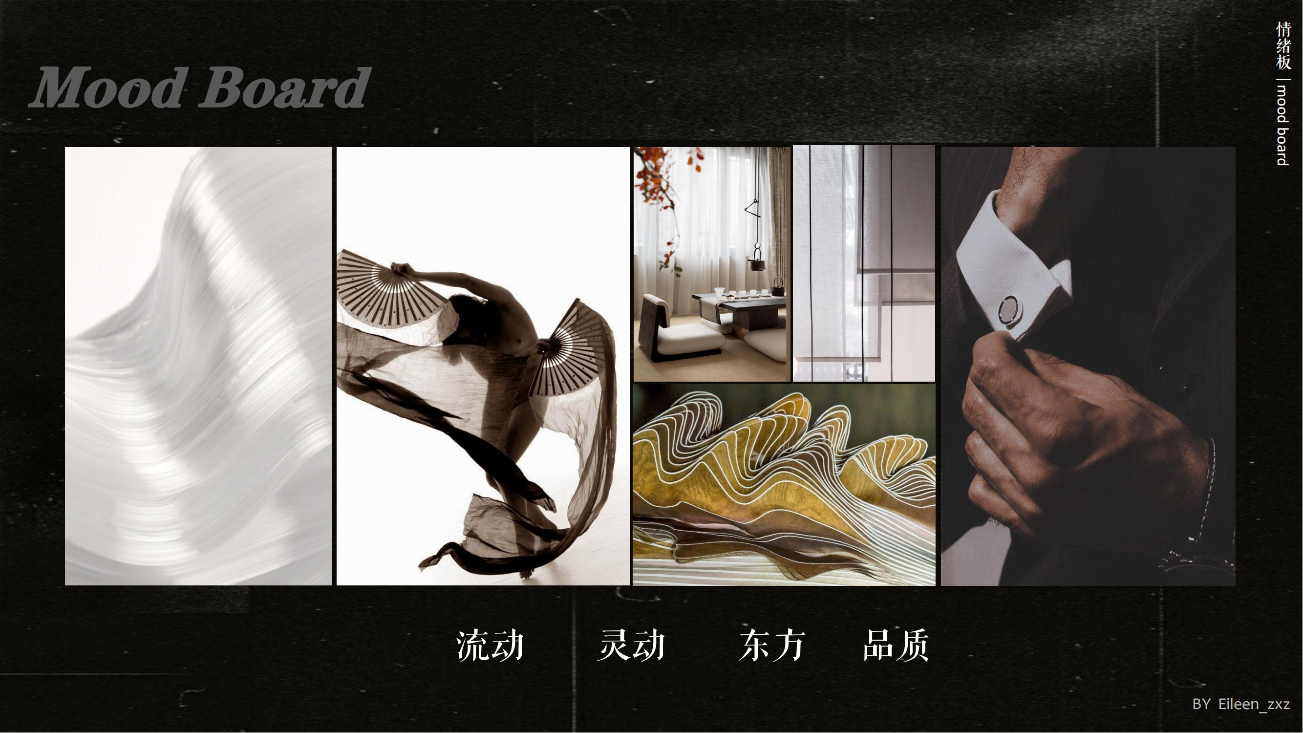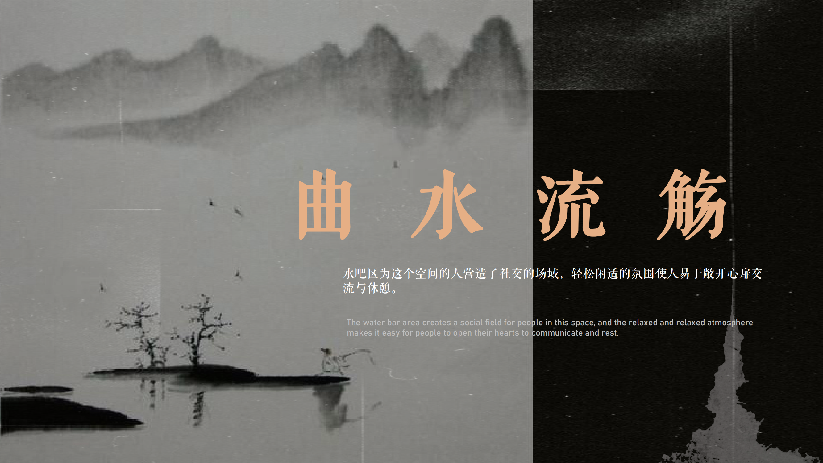 从江南水乡中提取水的元素,解构其形态,将色型质运用到空间的塑造和场域感的营造之中,为空间增添灵动与韵律之美。