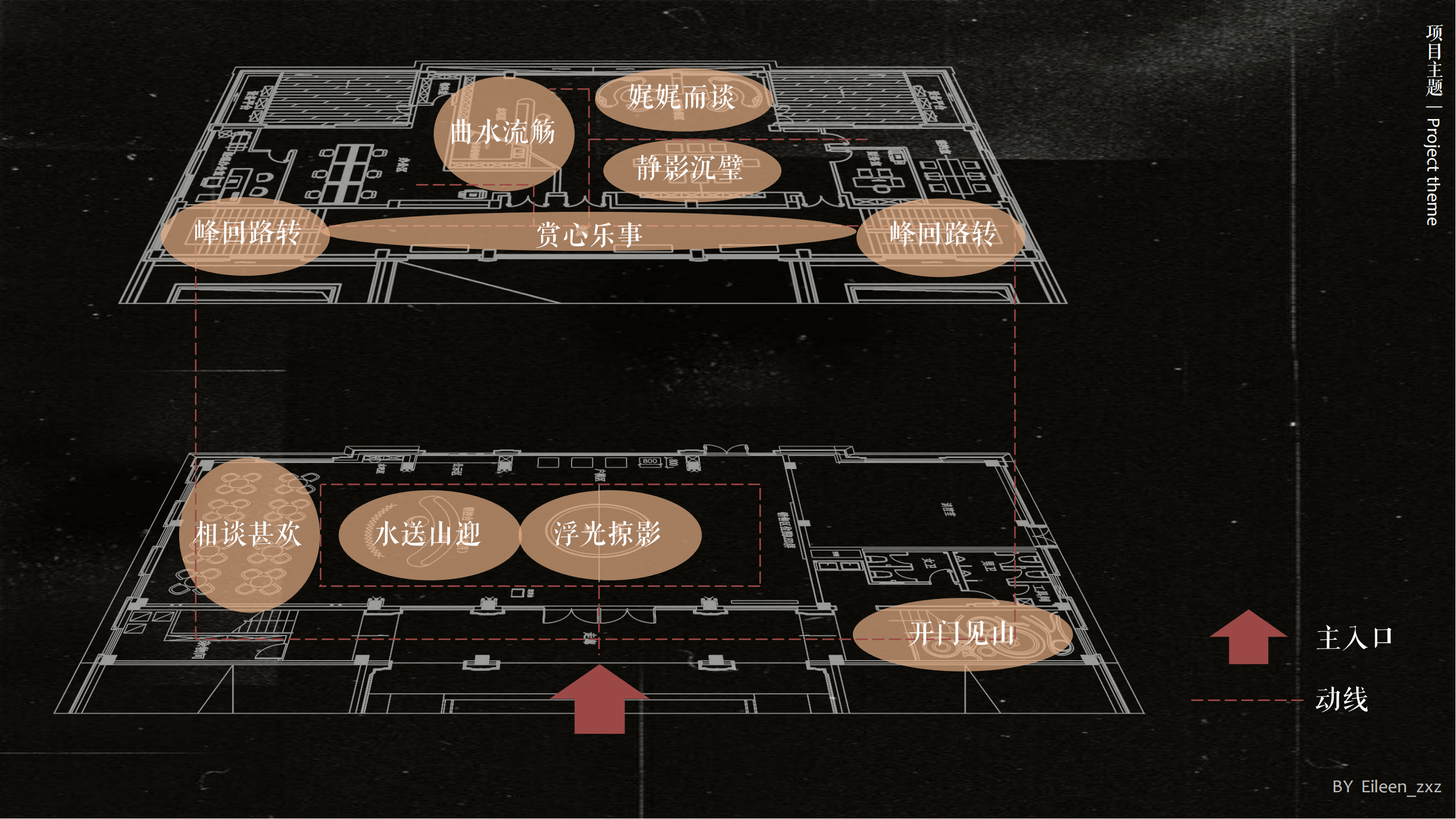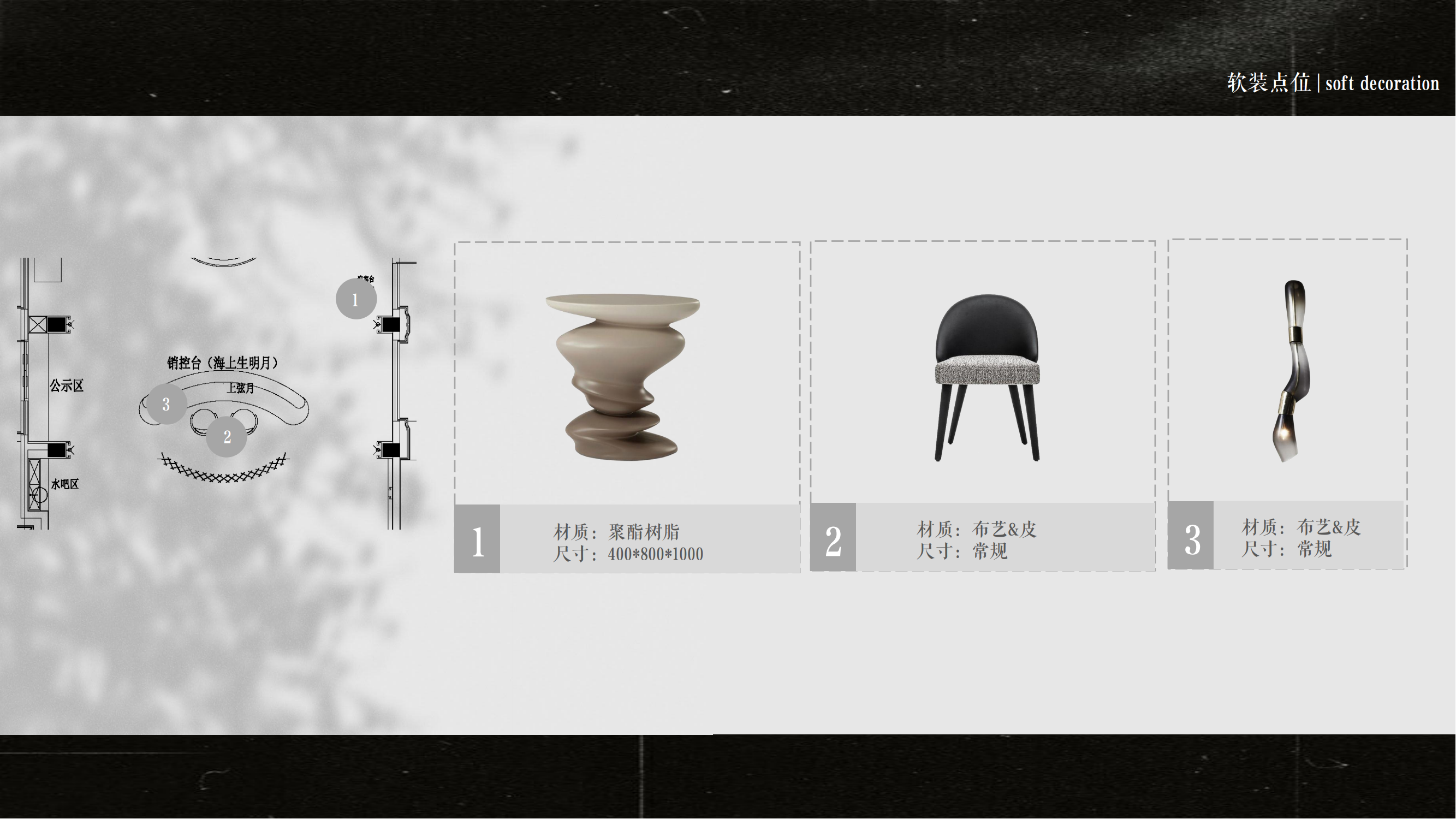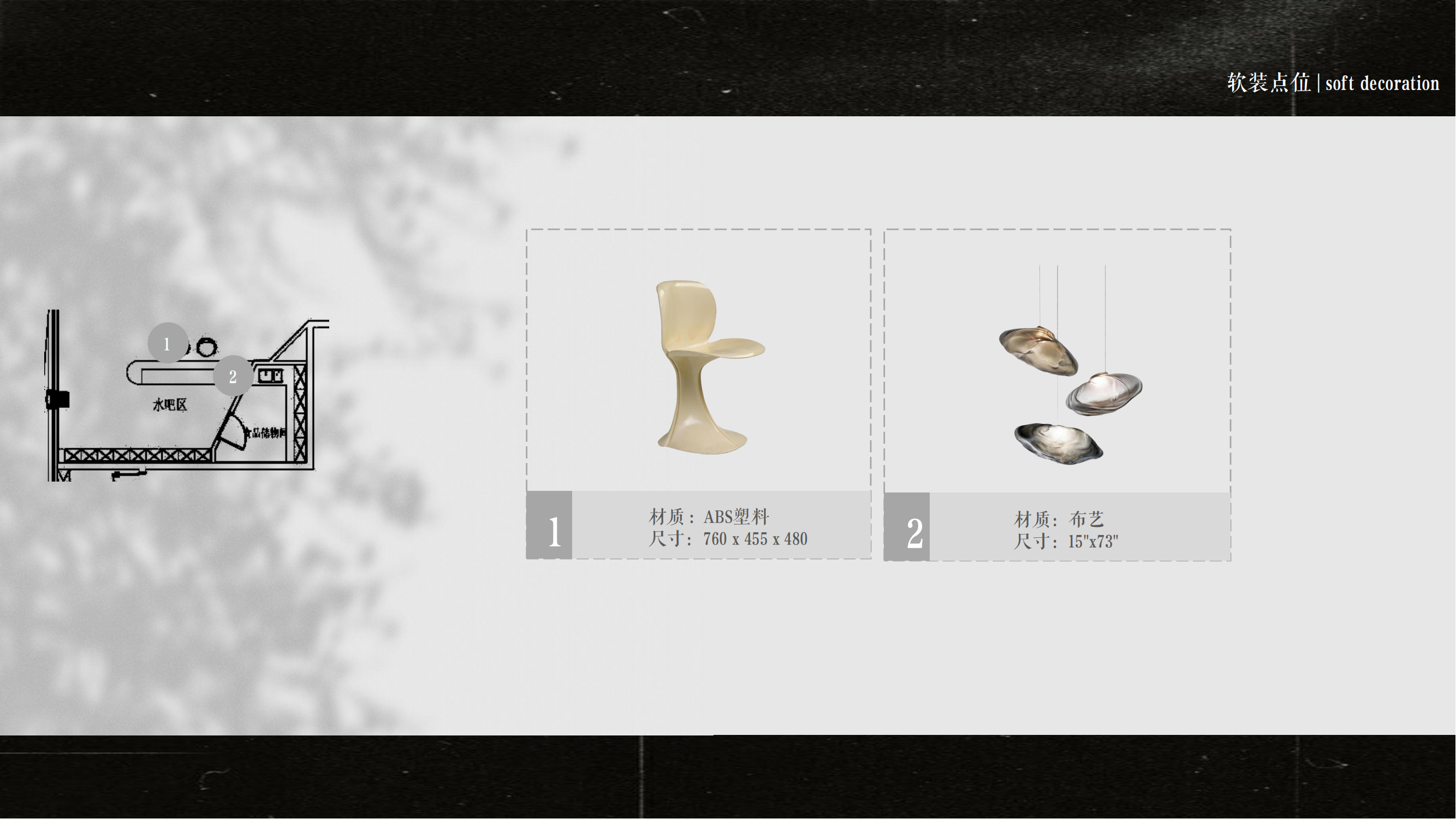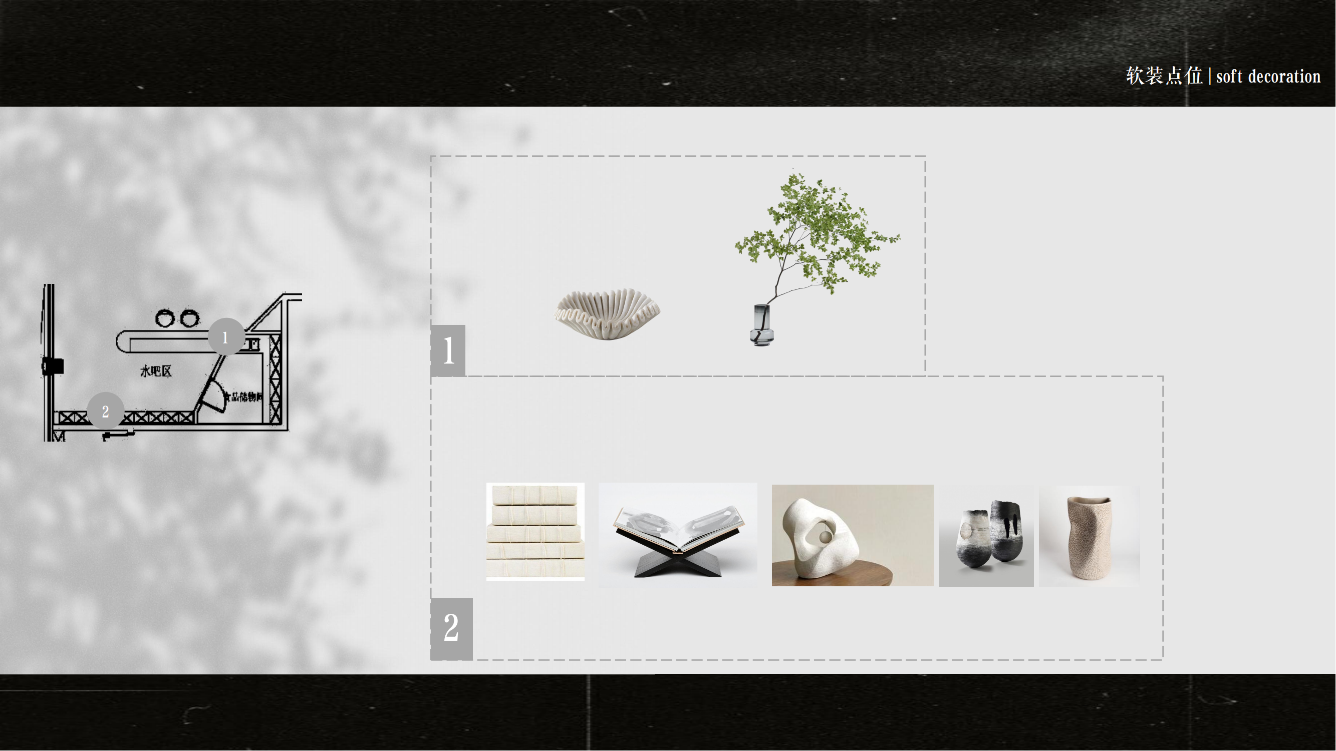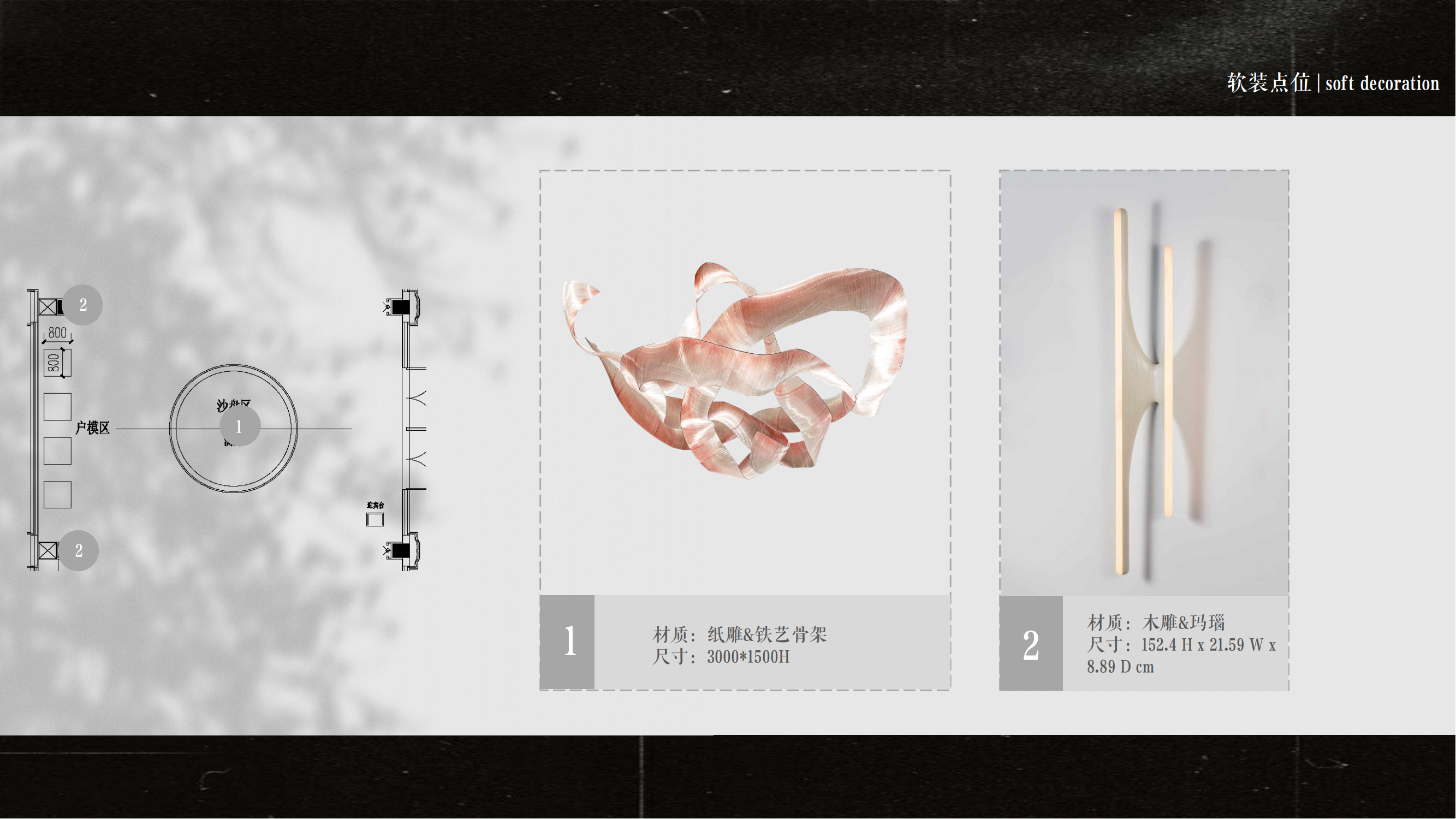 从江南水乡中提取水的元素,解构其形态,将色型质运用到空间的塑造和场域感的营造之中,为空间增添灵动与韵律之美。