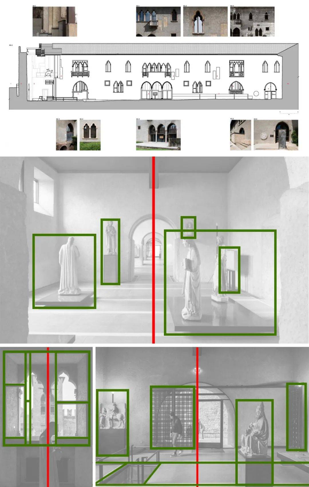 △斯卡帕在多个改造作品中将建筑原本的对称秩序感完全打破