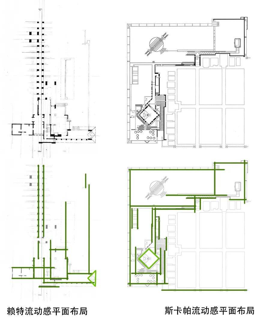 △赖特的流动空间布局与斯卡帕的流动空间布局