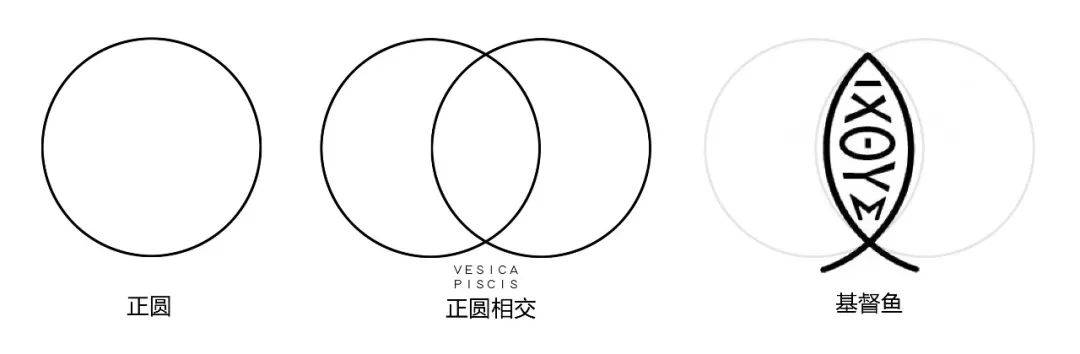 两个圆圈的互锁部分称为vesica piscis,这是象征由两个半径相同的圆组成,以每个圆的中心相交的方式相交位于对方的圆周上。该名称的字面意思是拉丁文中鱼的膀胱的意思。