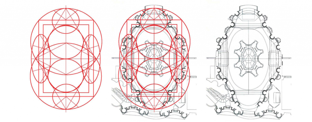 △圣卡罗教堂的平面布局由双圆交叉得来