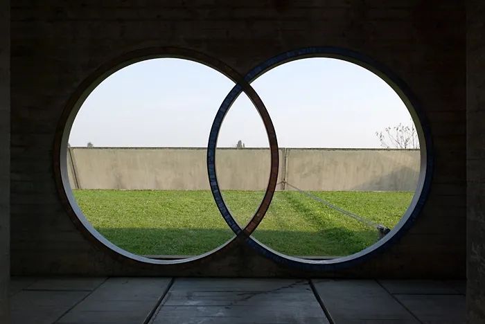 弗朗西斯科·博罗米尼(Francesco Borromini)是巴洛克之父,同为意大利人的斯卡帕无疑受到了这位大师的影响,当然这和斯卡帕教徒的身份也是十分契合的。斯卡帕的建筑中出现过四种不同圆的图形。前两种是正圆,以及两个正圆相交构成的双圆,此双圆造型也只出现在了布里昂家族墓园的项目中。