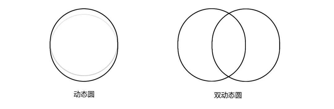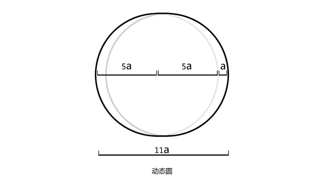 这种动态圆,是由两个圆形组成。先画一个圆,再以此圆圆心,像一侧移动1/5个半径,再画一个圆,两圆相交处用平滑弧线连接,形成一个接近正圆的椭圆,可以称之为动态圆。我们可以在维罗纳银行的外立面上看到这样的动态圆,不仔细看甚至很难区分到底是不是正圆。