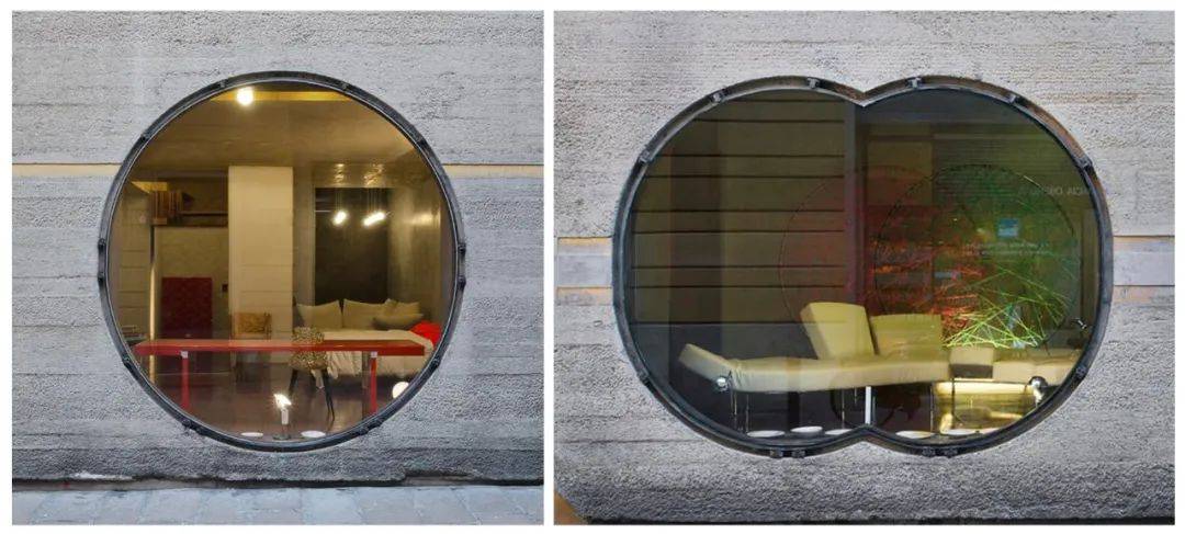 这种动态圆也可以进行双个组合,这两种圆的组合造型在贾维娜展厅外立面有同时出现。斯卡帕对于双圆的喜爱和执着是有着信仰般的存在的。在斯卡帕生命中最后的那段时光,他年轻的助手问他关于双圆的寓意,他的回答是:It is a leit-motiv of my life。这是我生命的母题。