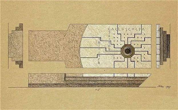 斯卡帕建筑作品的细部几何图案看起来确实与弗兰克•劳埃德•赖特遥相呼应,这很自然,因为斯卡帕仰慕赖特。但斯卡帕认为赖特并非完全东方的,这个结论可能基于他参观东京和其他地方时对日本建筑的观察。也许他认为自己的作品和东方有着最紧密的联系。